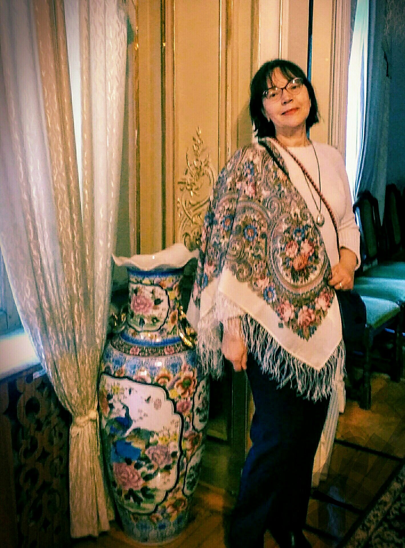 Бросилась в глаза удивительная схожесть платка и вазы :D