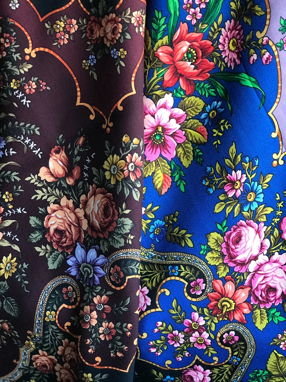 Надеюсь на печать новых колоритов, ведь рисунок замечательный: некрупные букеты, тонкая вязь орнамента и три цвета (оттенка) грунта!
