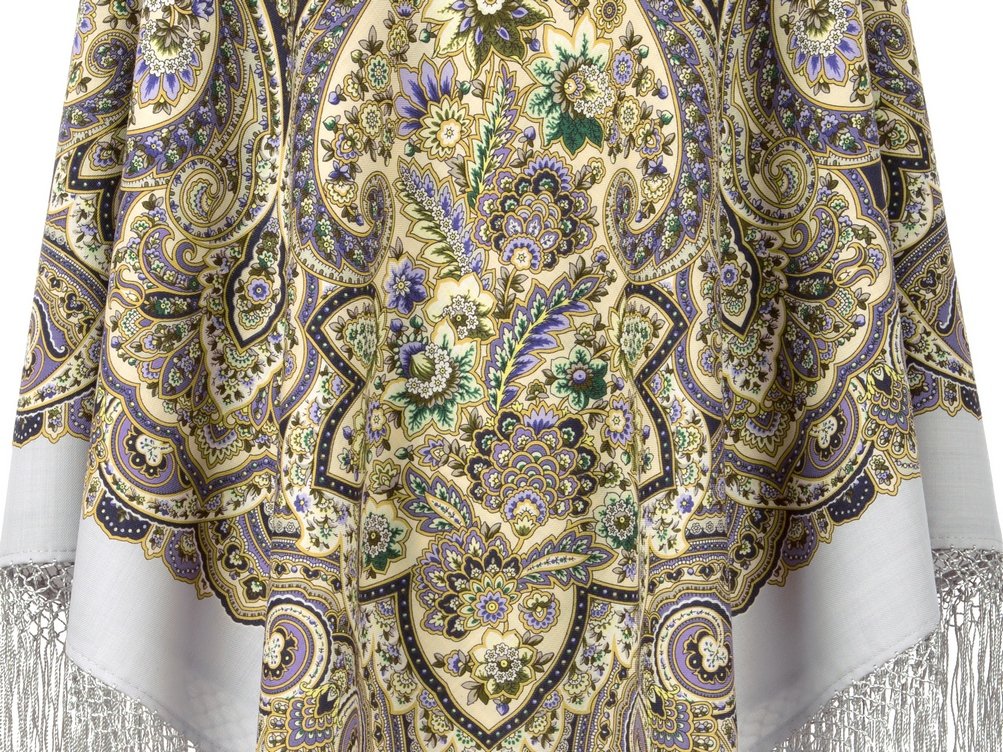 Платок шерстяной с шелковой бахромой, 146x146 см.