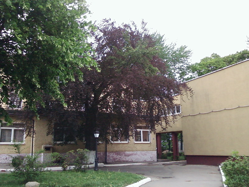Это территория детского ортопедического санатория. Если внимательно посмотреть, то можно увидеть на красном буке веточку зеленого цвета. Сколько лет дереву, точно никто не знает (но уже 65 лет,как Калининградская область принадлежит России.) Нынешний санаторий- это бывшая немецкая усадьба, бывший хозяин привил зеленую веточку к красному буку, и она прижилась