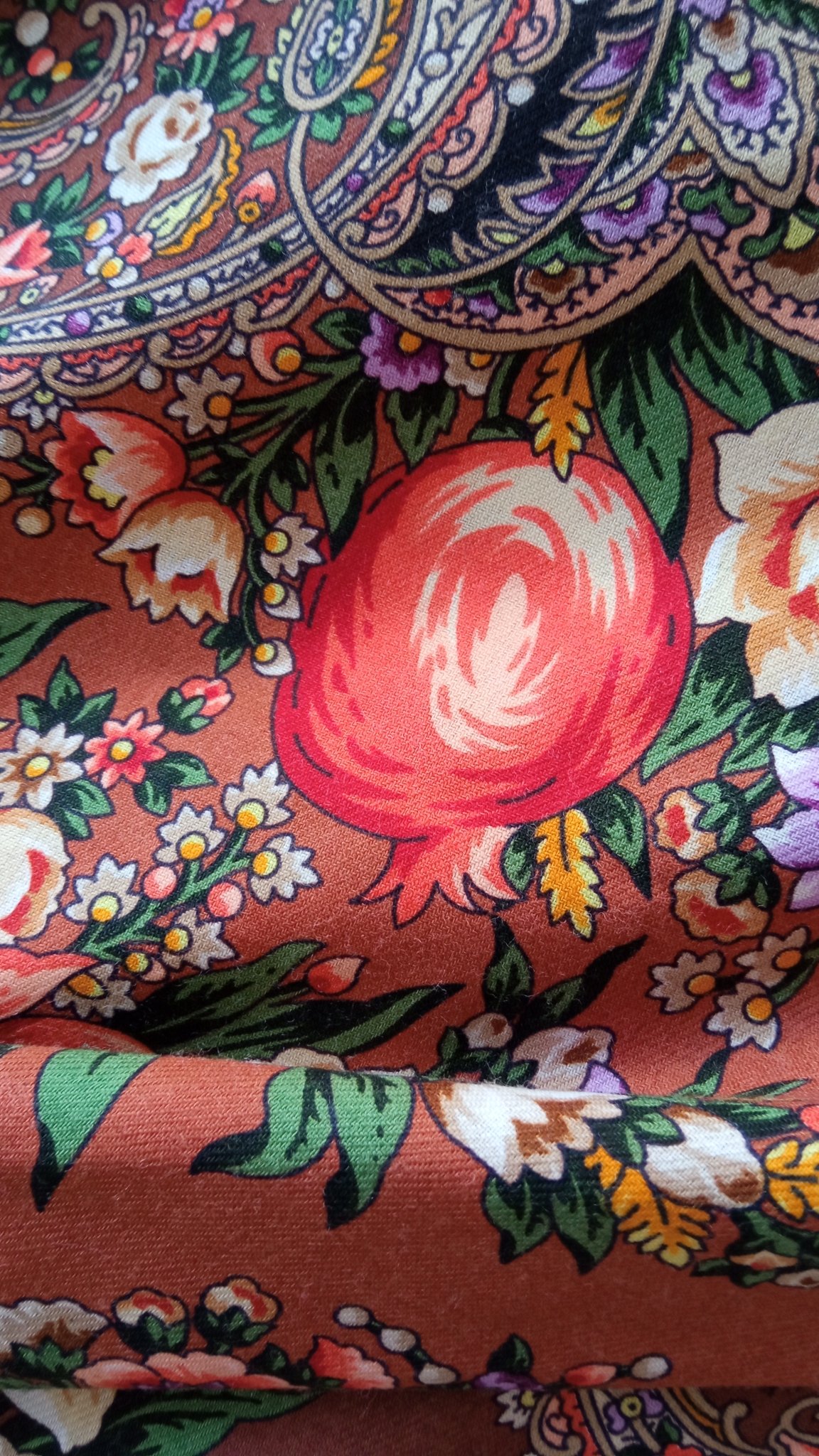 А про листики, и весь узор - да, он в хаки, но если хаки, то очень светлый и такой бежевато-сепийный оттенок этого цвета. А так как его, этого узора много, то в скрутке он активно работает. Лимонный фон создаёт только лишь свечение шали, а основную структуру рисует узор. Тань, и сиреневого много! Как мы любим.