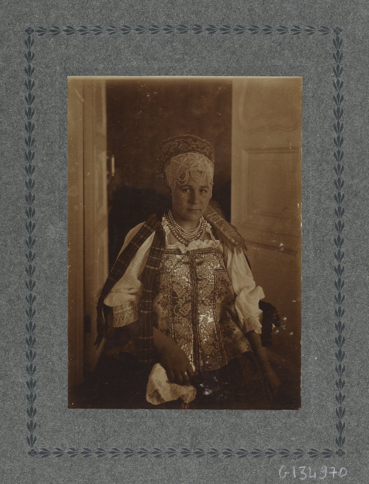 Ну вот,просватали девушку и она в своем самом лучшем,парадном костюме идет замуж. Костюм "повязочницы" состоит из рубахи с пышными рукавами,шелкового или парчового сарафана, шелковой же,с золотыми голунами душегреи, шали (в пасмурную погоду ее могли набросить на плечи,но чаще носили свернутой на левой руке),нескольких шейных шелковых платков(3 минимум), бус,причем количество янтарных ниток давало ясное представление о материальном уровне семьи. Ну и - повязка,самое дорогое в убранстве девушки. Сохранилось немало записанных фольклористами рассказов тех невест,молодиц 1920-ых гг.,которые и состарившись, в начале 70-80ых с обидой вспоминали,что вот дочерей много у их родителей было,так они только старшей сестре повязку справили,а ,мол,остальным - только шальки какие,да и весь сказ. Такая тягостная участь...
