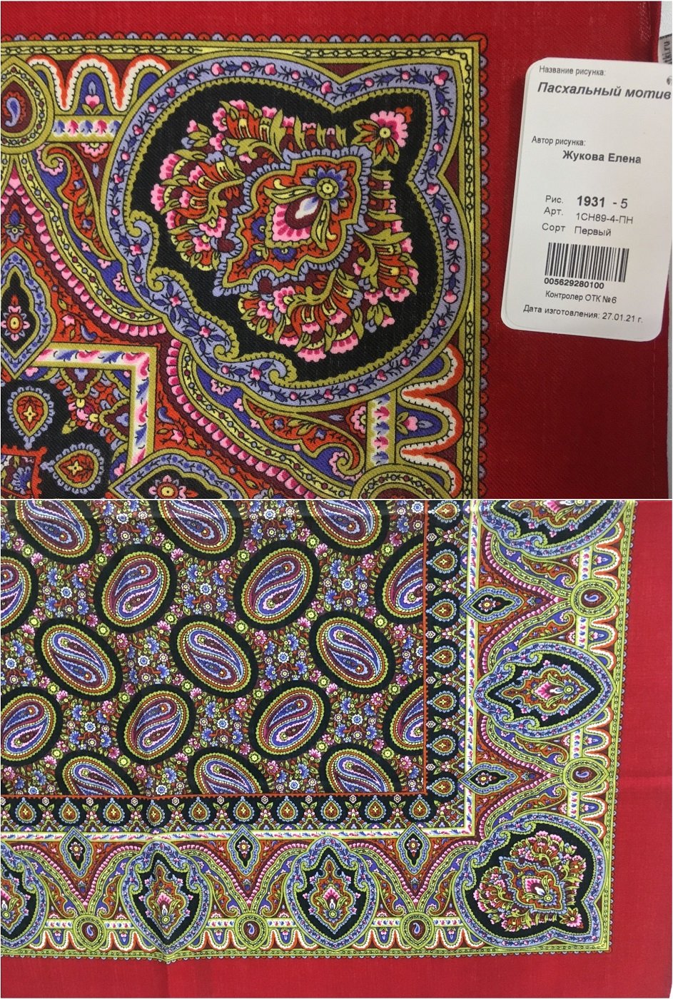 В каталоге фабрики немало таких платков, при этом и на сайте, и на этикетке указывается, что это старинный рисунок неизвестного автора.