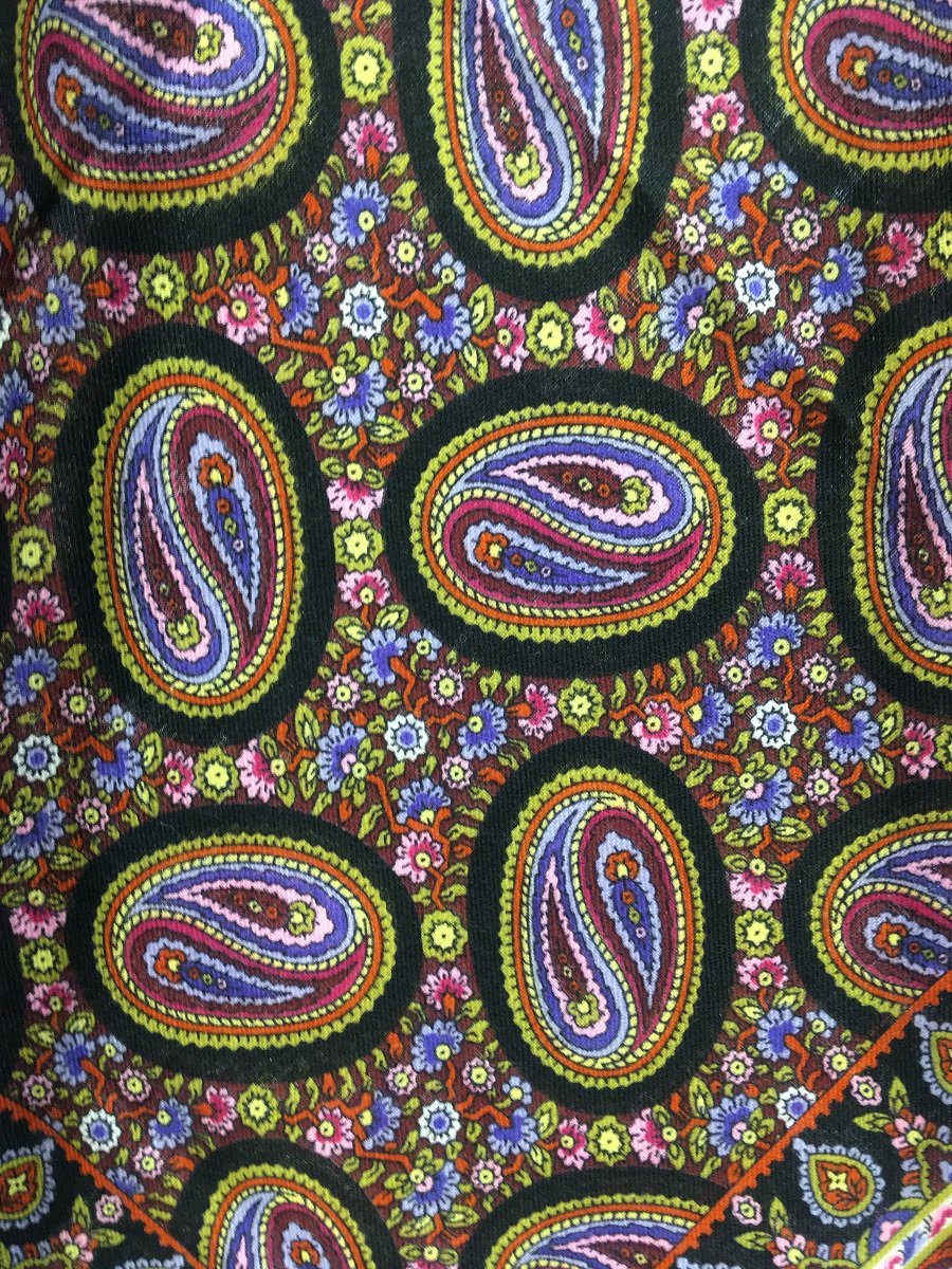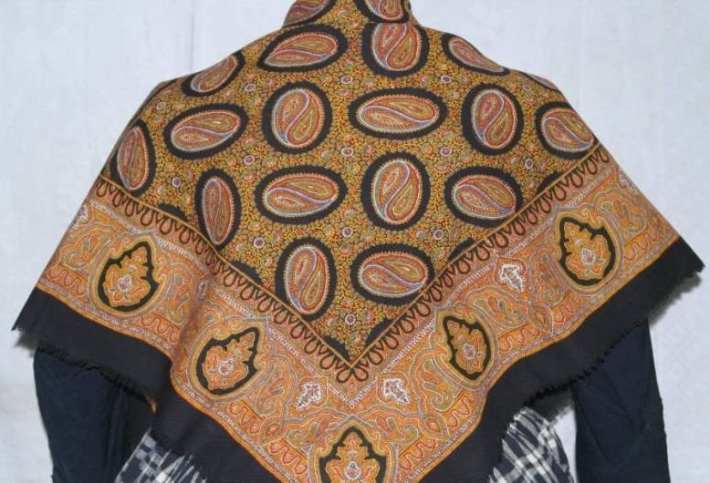 Описание: «Старинный платок из тонкой мериносовой шерсти с набивным рисунком пейсли, 1м х 1м»
