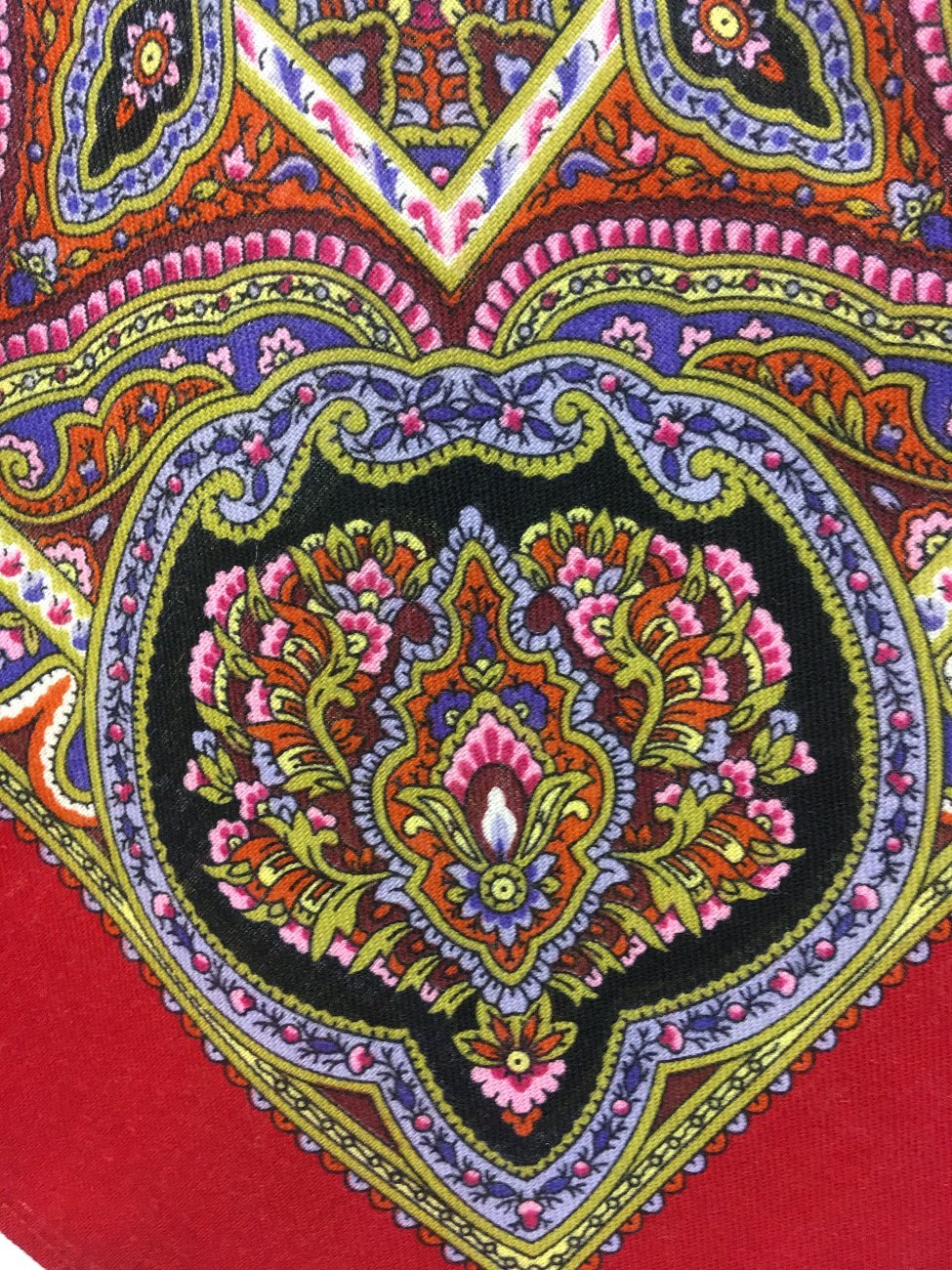 Описание: «Старинный платок из тонкой мериносовой шерсти с набивным рисунком пейсли, 1м х 1м»