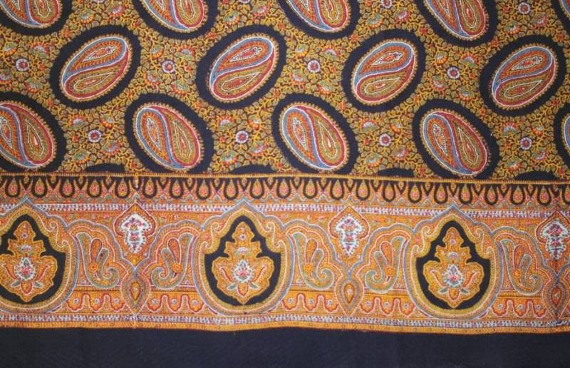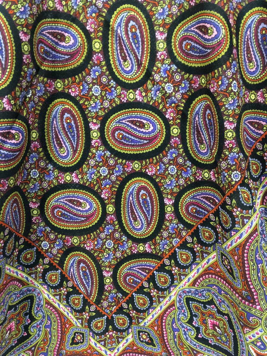 Описание: «Старинный платок из тонкой мериносовой шерсти с набивным рисунком пейсли, 1м х 1м»