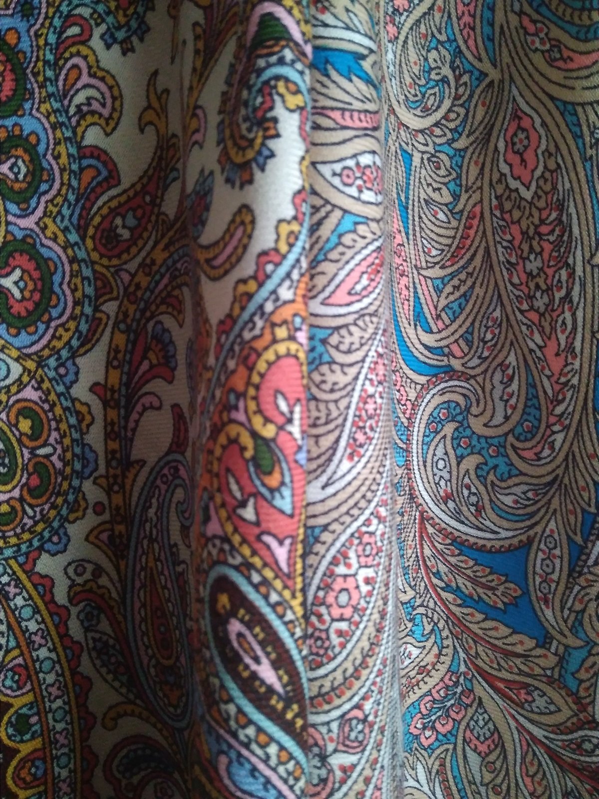 На фото получились как сквозь дымку, в реальности платки более яркие