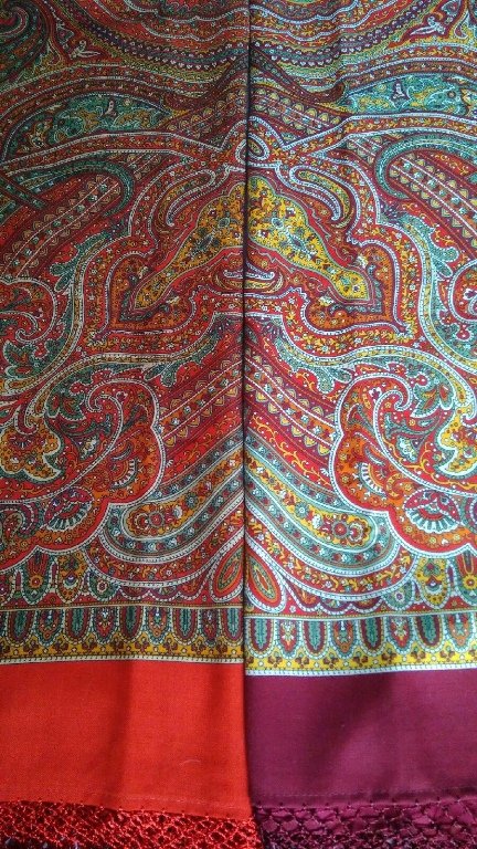 Пыталась сделать сравнения, но если колориты на фото сильно искажаются, делать сравнения колоритов как-то странно. Поэтому чуть-чуть приложила только для общего понимания, а именно – это совершенно разные шали , не только по рисунку, но и по цветовому решению (заочно думалось, что колориты будут близки)