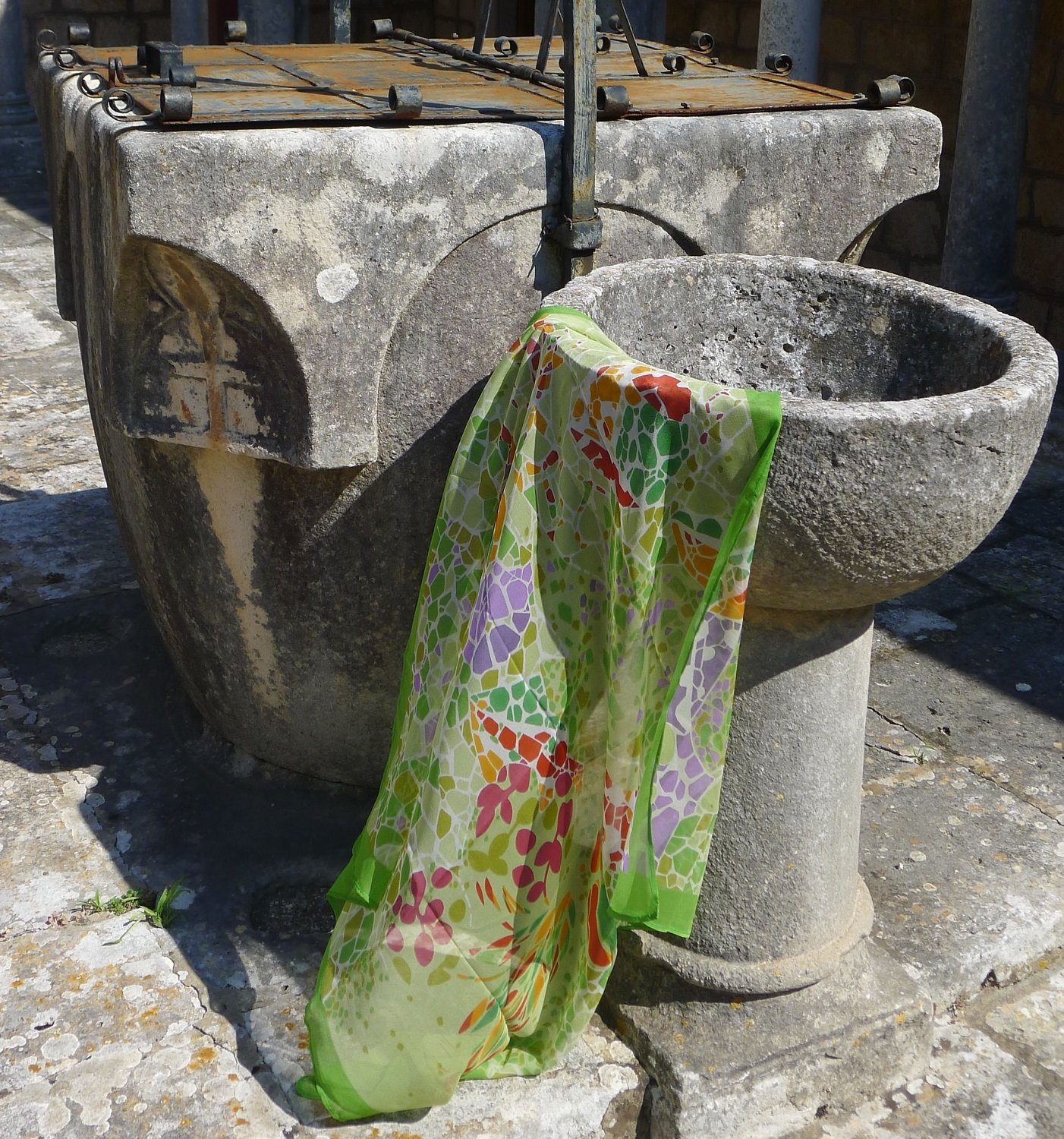 Невесомый креп жоржет, жаль, что ушли платочки. Палантины вроде остались. Парк Гуэль есть в 10 колорите, рада. Цветков не видела, спасибо!