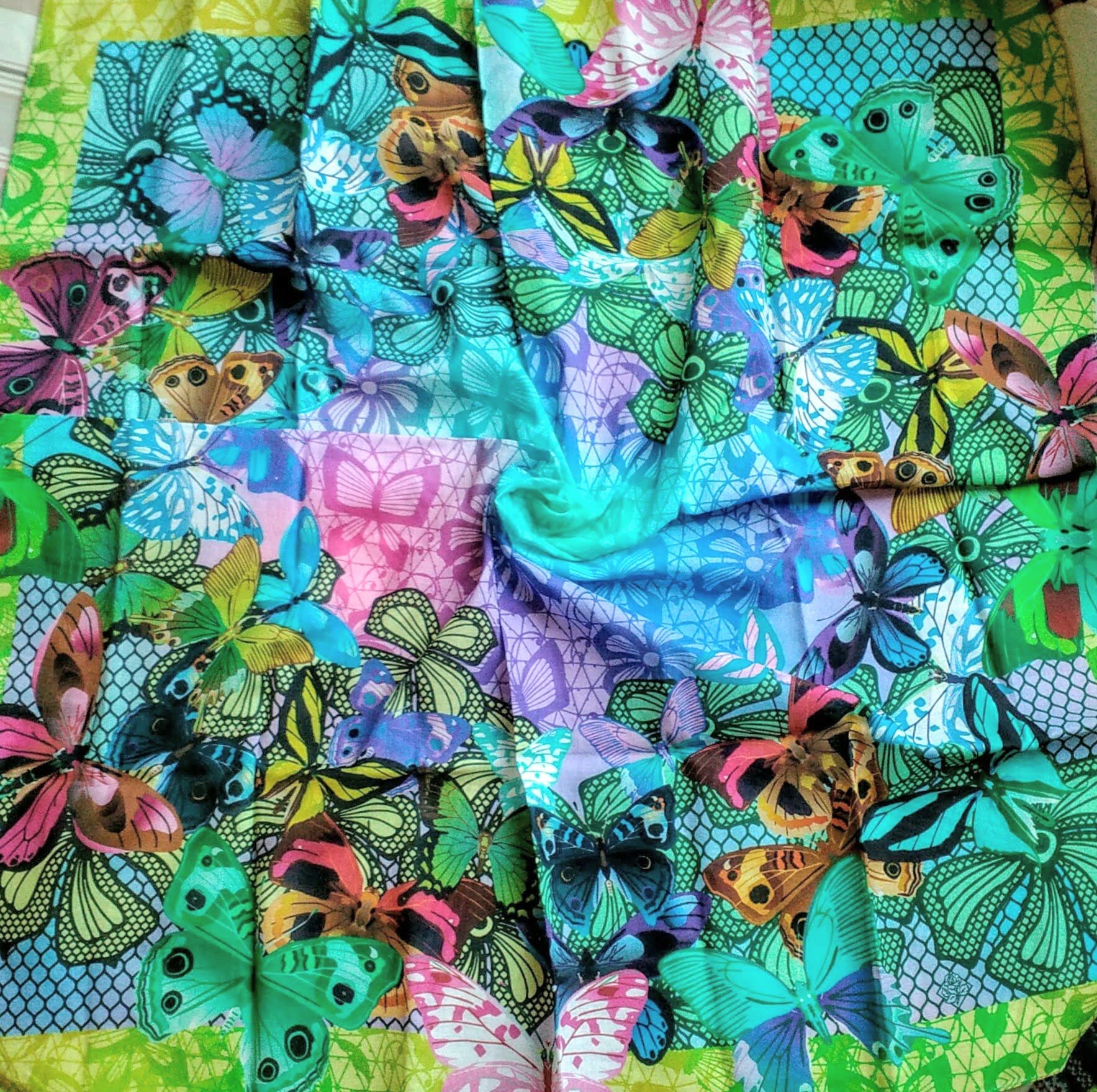 Галина, если бы вы знали, сколько раз я после ваших фотографий в Календаре, бежала на сайт рассматривать мало известные платки! Причем они сразу попадают у меня в "избранное", а потом и зачастую в "купить". Вы так вкусно их показываете. Бабочки в вашей весенней фантазии прелестны!