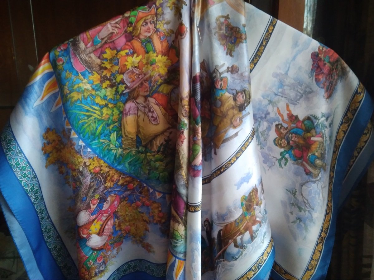 В Масленице, не мой взгляд, композиция рисунка более свободная, чувствуется динамика, разворачивающийся «сюжет» , зато в 12 месяцах более богатая палитра, за счет чего увеличивается вариативность использования.