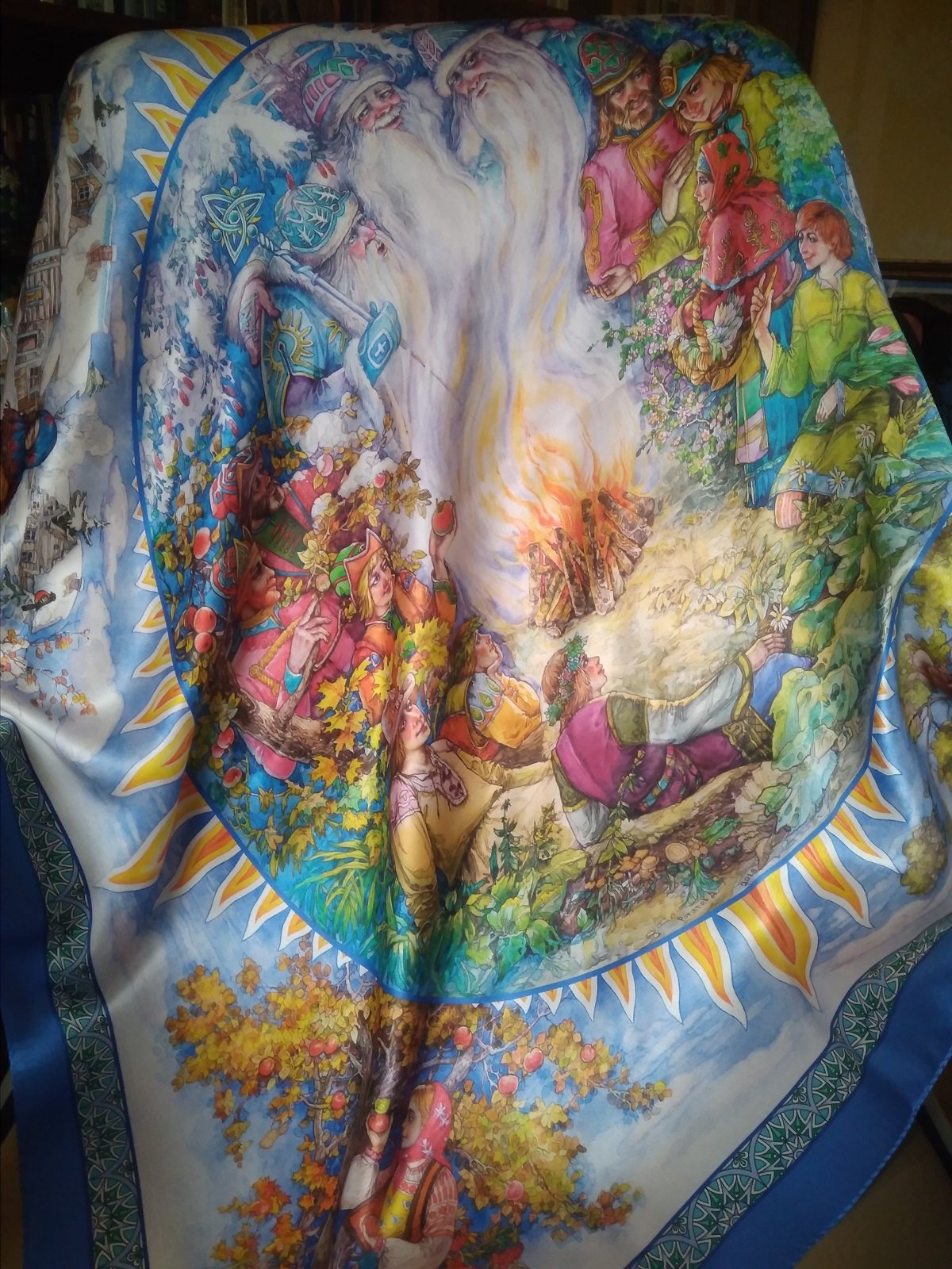 Про сувенирные Масленицу и 12 месяцев - увы, очень хотела приобщиться, но они такие ярко-прохладные, что не сложилось. Почему их сделали только атласными?! Вот сейчас Стольный град есть в варианте на атласе и на жаккарде. Атласный - чисто белый, а вот жаккардовый чуть с желтинкой.