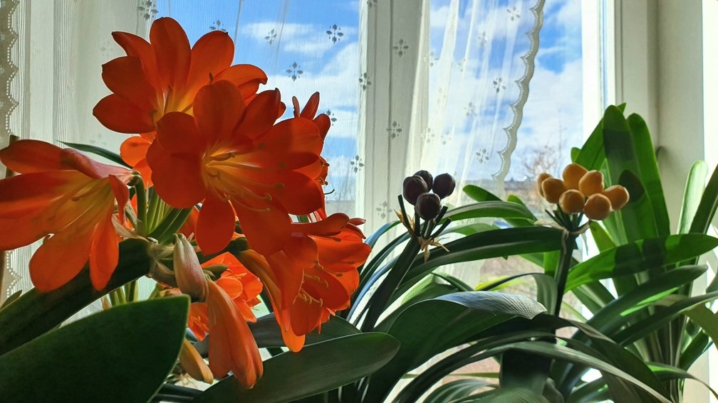 Кливия - воистину сорняк :D Даже в питерской "пещерке" цветёт без особенного ухода. Сегодняшнее фото.