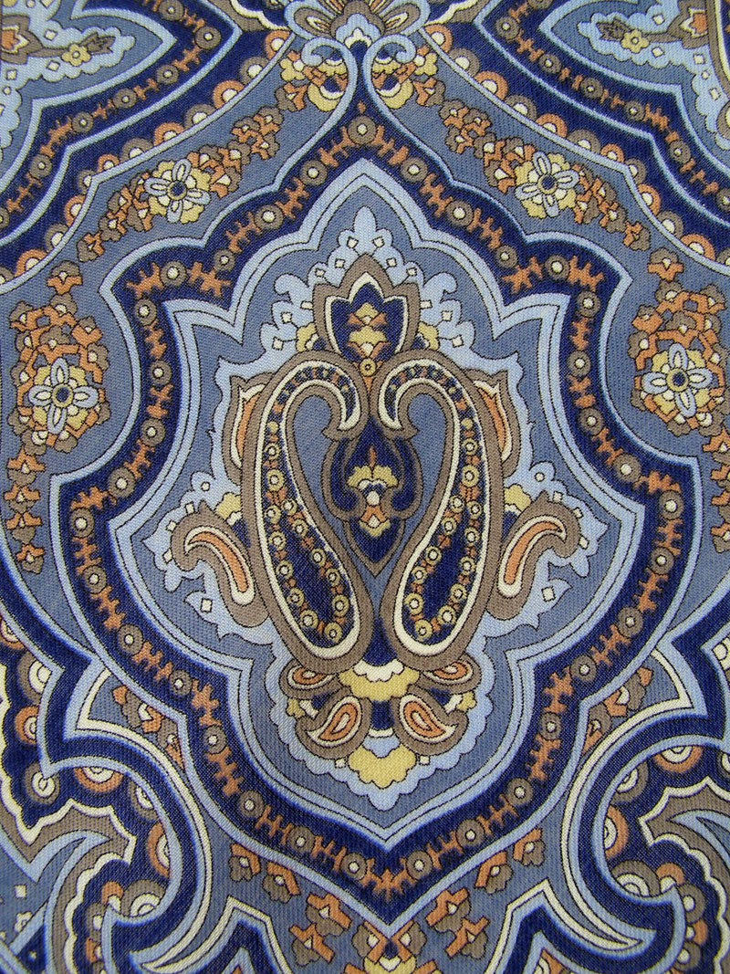 Пока я не пустила платок в расход... то есть не скроила из него сумку, показываю в деталях. Платочек маленький, с осыпкой. Мне очень понравилась его цветовая гамма - только синие и коричневые краски (цвет джинсов с цветом ниток машинной строчки).