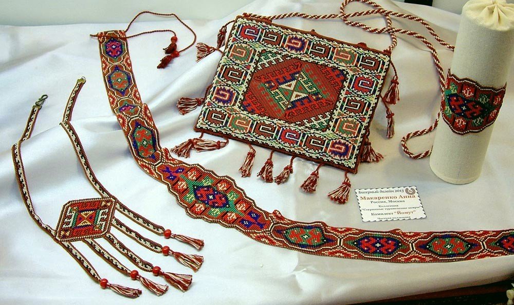 Ого! Как тонко и профессионально!argon писал(а): ↑11 апр 2021, 16:41Бисеру я тоже воздала должное: тку, вяжу. Вот для примера. Это из коллекции "Старинные туркменские ковры". На фото два тканых комплекта по мотивам ковров племени Йомут (у каждого племени свои элементы орнамента, они гёлями называются; ну и колористика разная). Пояс+браслет и Торбочка+гердан. Тут я хотела передать краски самых старых ковров, где оттенки натуральных красителей уже несколько деградировали. Тогда же соткались еще вещички в стиле ковров племени Теке и Сарык, но фото под рукой нет.