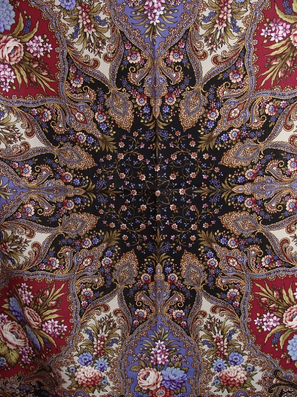 В магазине был ещё один серый платок, кажется "Незабудки" - вот у него сильно серый в синий отлив. У моего платка серый стальной. Это на фото, может быть, не совсем точный оттенок вышел. Мне это серый очень нравится.