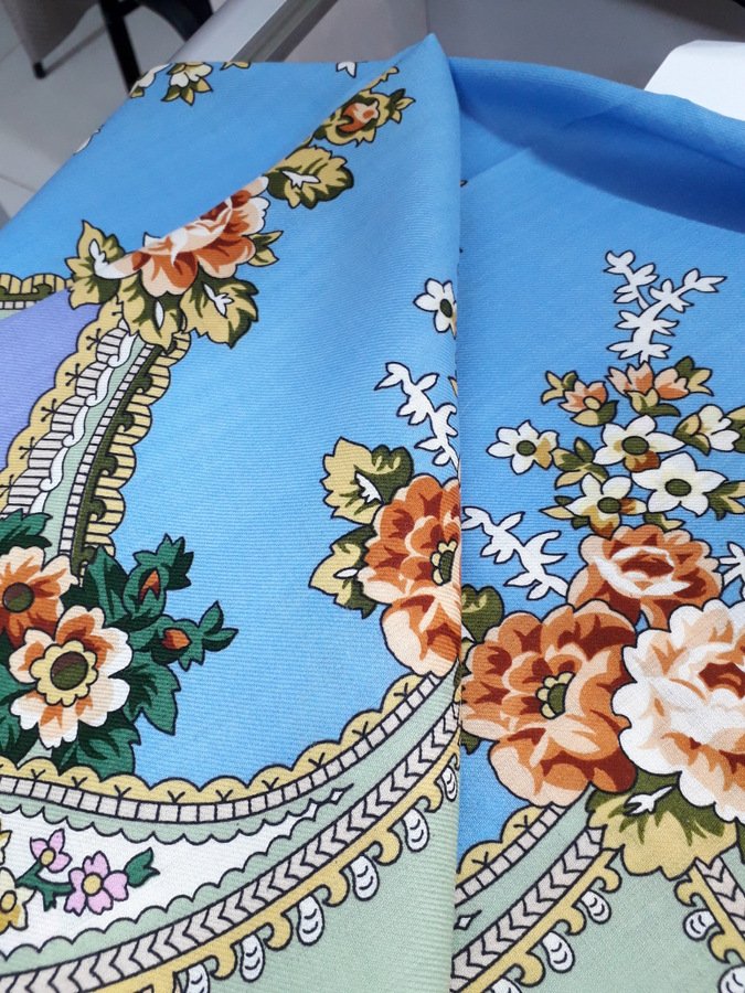 Мне на первом фото показалось, что середина у 2 чуть темнее. Где крупно, вроде, уже и нет. Но это могут быть и особенности печати партий. Видела и бОльшую разницу в цвете на платках одного колорита, без каких-либо А.