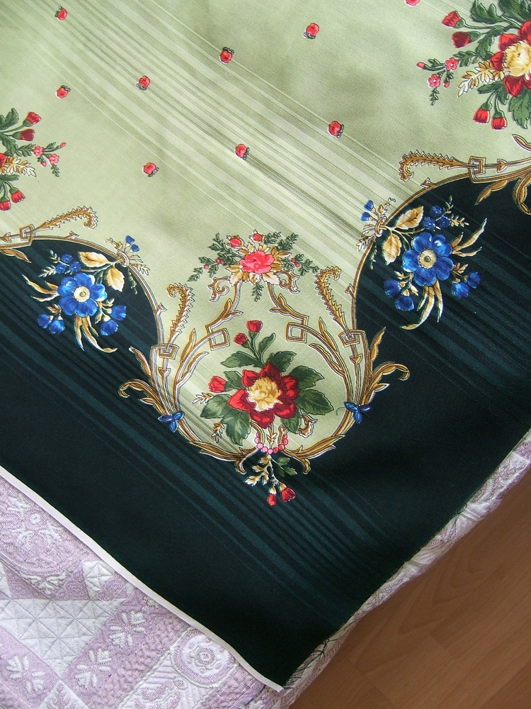 Zhara, у меня такой платочек, я его показывала, только у меня с бахромой, не лоскут. Покупала на Вернисаже, но этикетки не было, так что номер рисунка остается неизвестным.