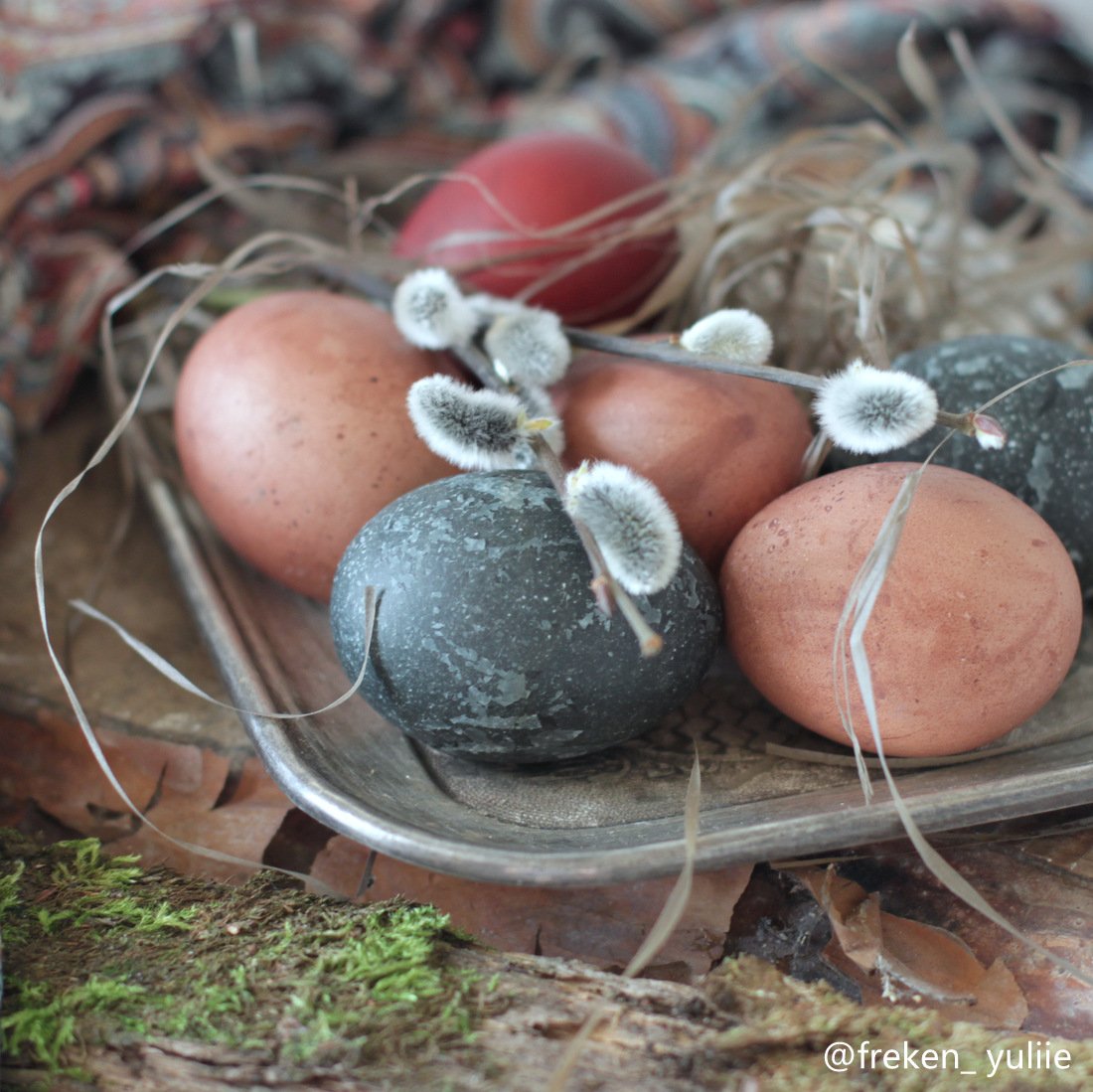 Решила в этом году покрасить яйца не только луковой шелухой, но и другими природными красителями. Получились весьма оригинальные цвета.