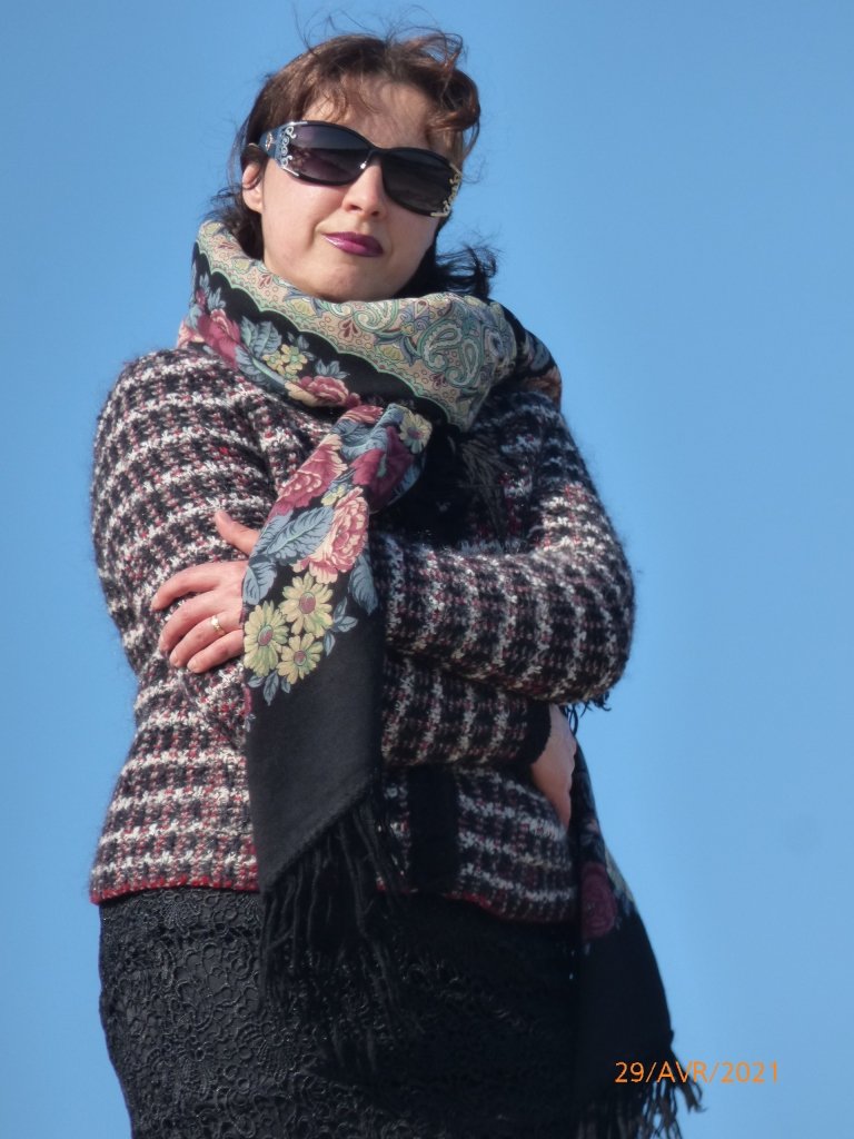 Елена Л , Вы такая позитивная, платок вторит вашему настроению, легкий, радостный, солнечный. Просто восторг от ваших фотографий и от вашего лука!