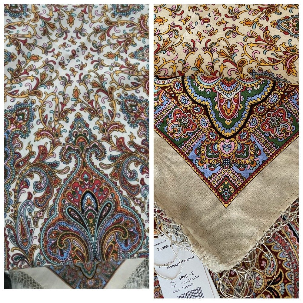 Ниже сделала сравнение с первой версией. Будто то два разных платка. Спасибо большое мануфактуре--что хотела изначально, то и получила: и "потеплее" и потемнее! Ткань более тонкая и гладкая ,и более пластичная, нежная, мягкая, в сравнении с первым Теремом.
