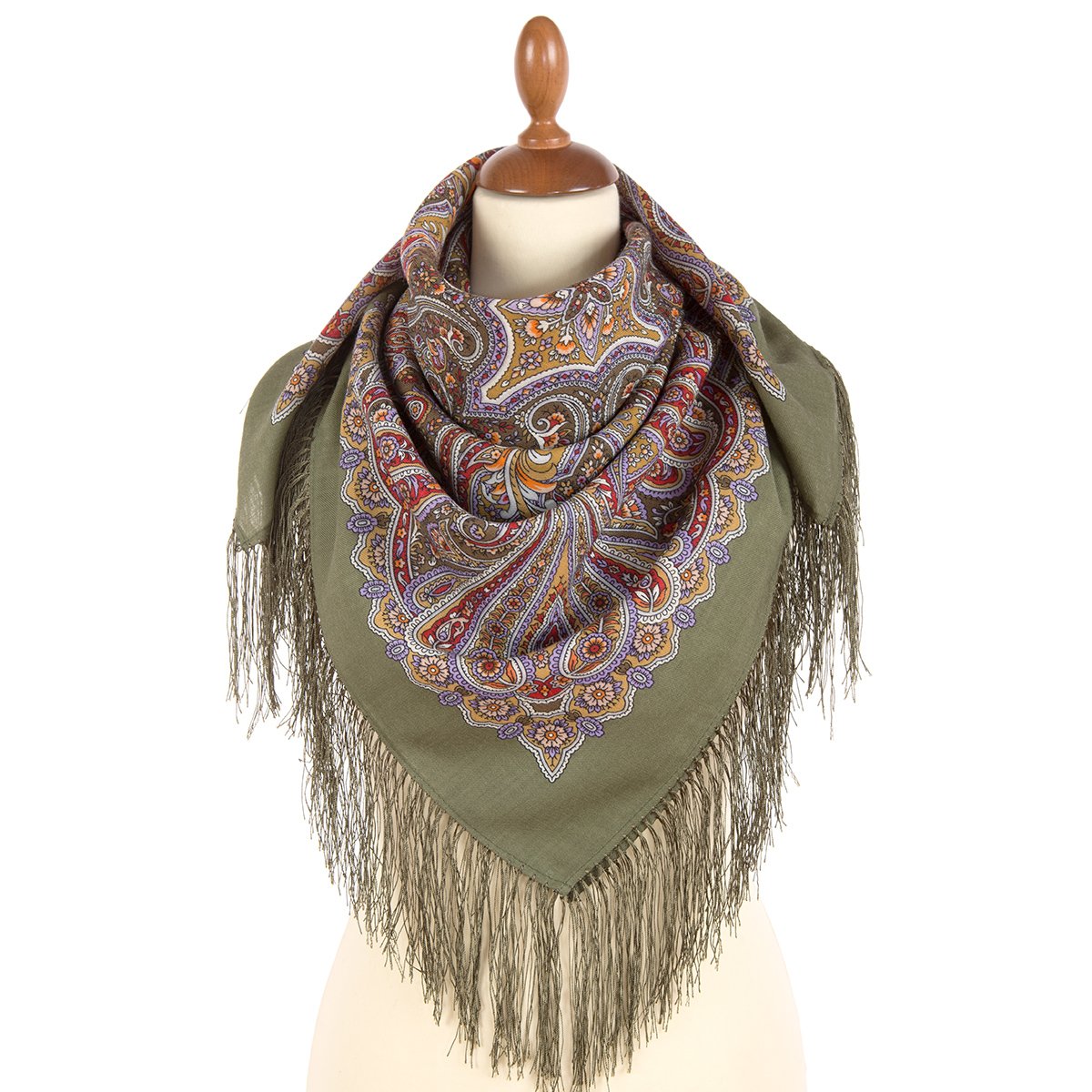 Многоцветная шаль, напечатанная на уплотнённой шерстяной ткани 148х148