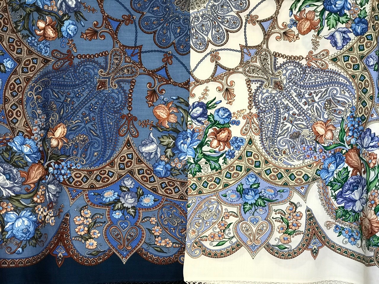 Согласна полностью, сама лето, поэтому имею все эти синие шали кроме Княжеского и Карнавала. Карнавал почему-то мне не пошёл настолько, что даже в коллекцию не купила. Причём и цветом, и рисунком.
