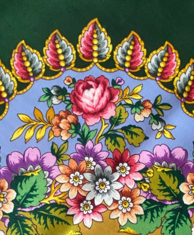 Приобрела эту шаль недавно, в одном из наших фирменных магазинов. При покупке продавец загадочно уточнила, что шаль--"в стандарте". На этикете--первый сорт, дата изготовления 2018.При ближайшем рассмотрении ( уже дома) обнаружила множественные мелкие белые штрихи на рисунке листьев и стеблей, почти незаметные, в области контура. Вопрос--это непрокрасы или такой рисунок, блики? Расположены они хаотично. В одной части есть, в другой аналогичной части рисунка--нет. (Немного упало настроение--засомневалась.)(Кликните, чтобы почитать оффтопик)...