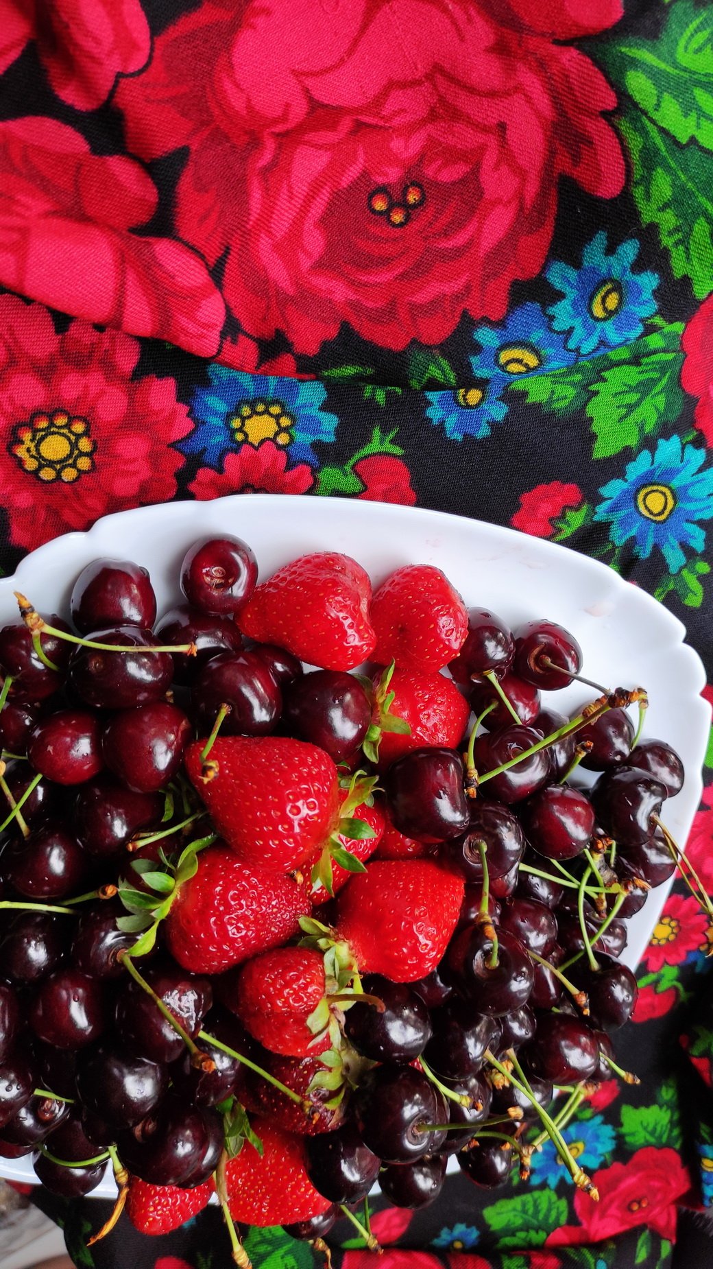 Все летние цветы и ягоды собрались на одном платке...