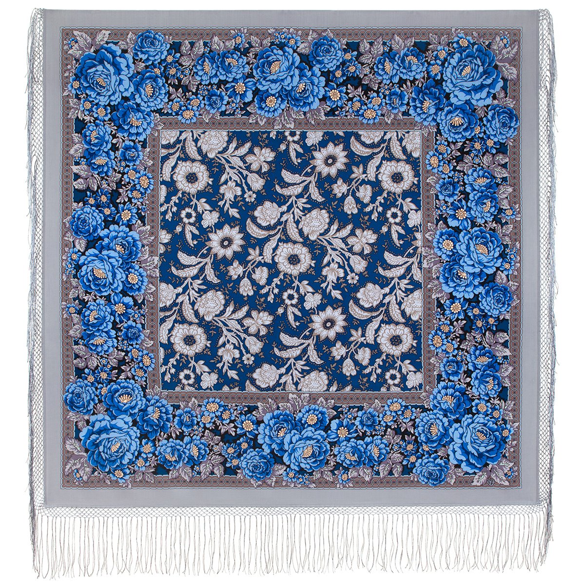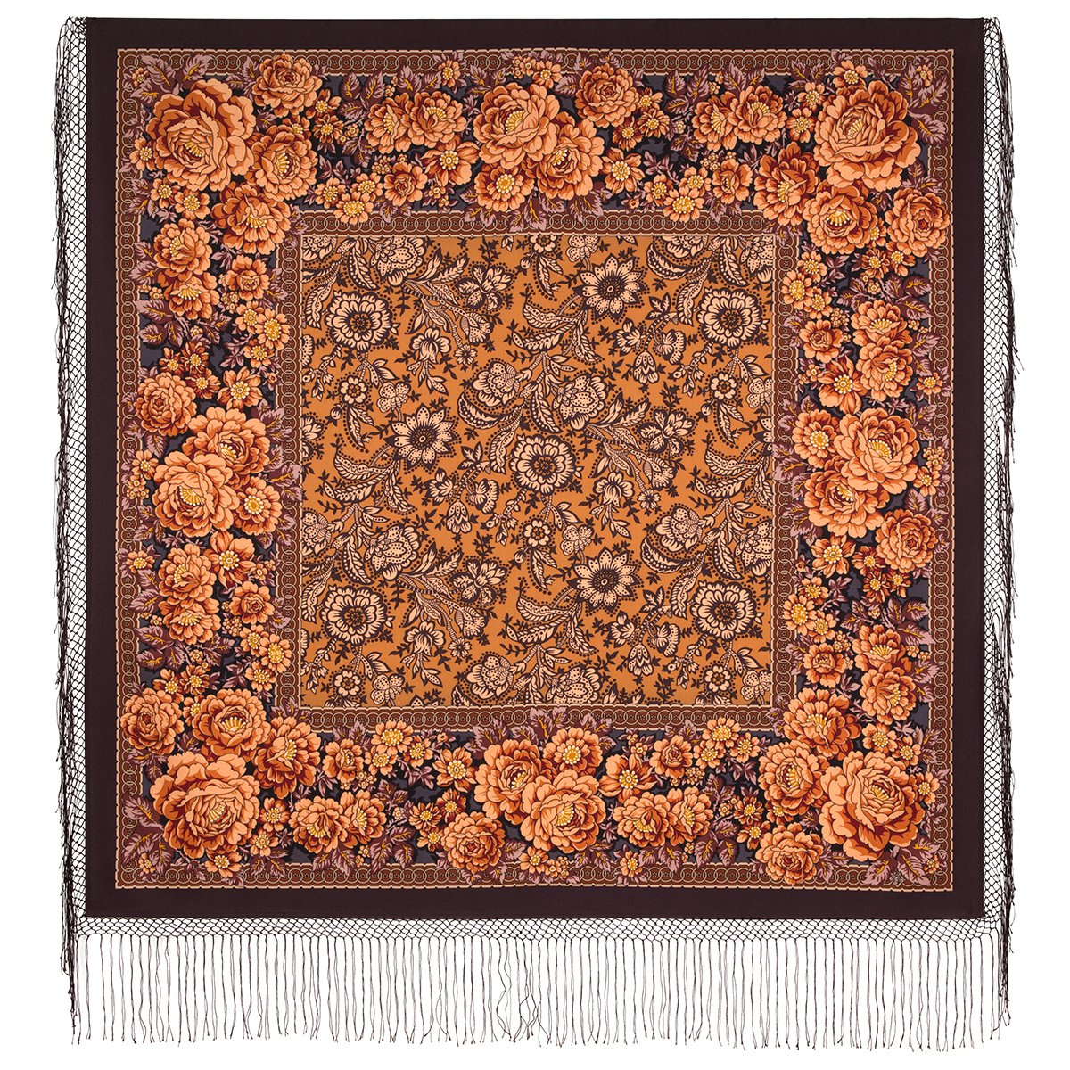 Платок шерстяной с шелковой бахромой, 125х125 см
