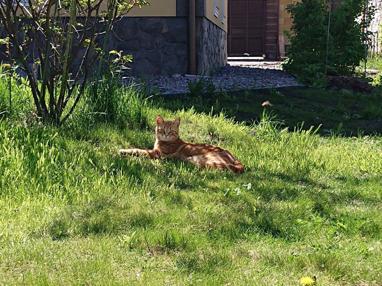 Тоже ведь повезло ему. Год назад должен был «попасть в моряки». Мы увидали как кошка-Мама несла в зубах прямо красного котёнка. И попросили хозяина этой кошки- соседа по даче чтоб если найдёт выводок, чтоб рыжего котёнка нам оставил. Мы теперь точно знали, что там есть рыжий. Приехали на дачу через неделю, а наш нас уже ждёт. Ему тогда и месяца не было и лечить от лишая пришлось.