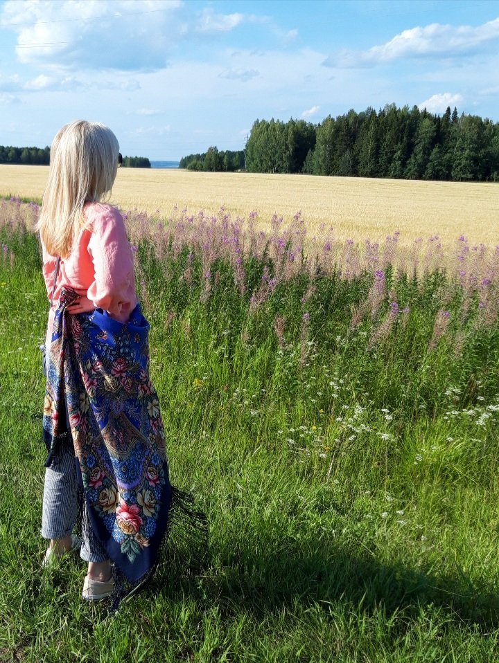 Joy, Люба, хороша вам архитектурная синь Июньского утра, особенно соломенные розы подсвечивают здорово глубину синего. Цикорий хорошо позировал вместе. Прочитала, что это ваша самая синяя шаль и задумалась, а Славянку не примеряли?