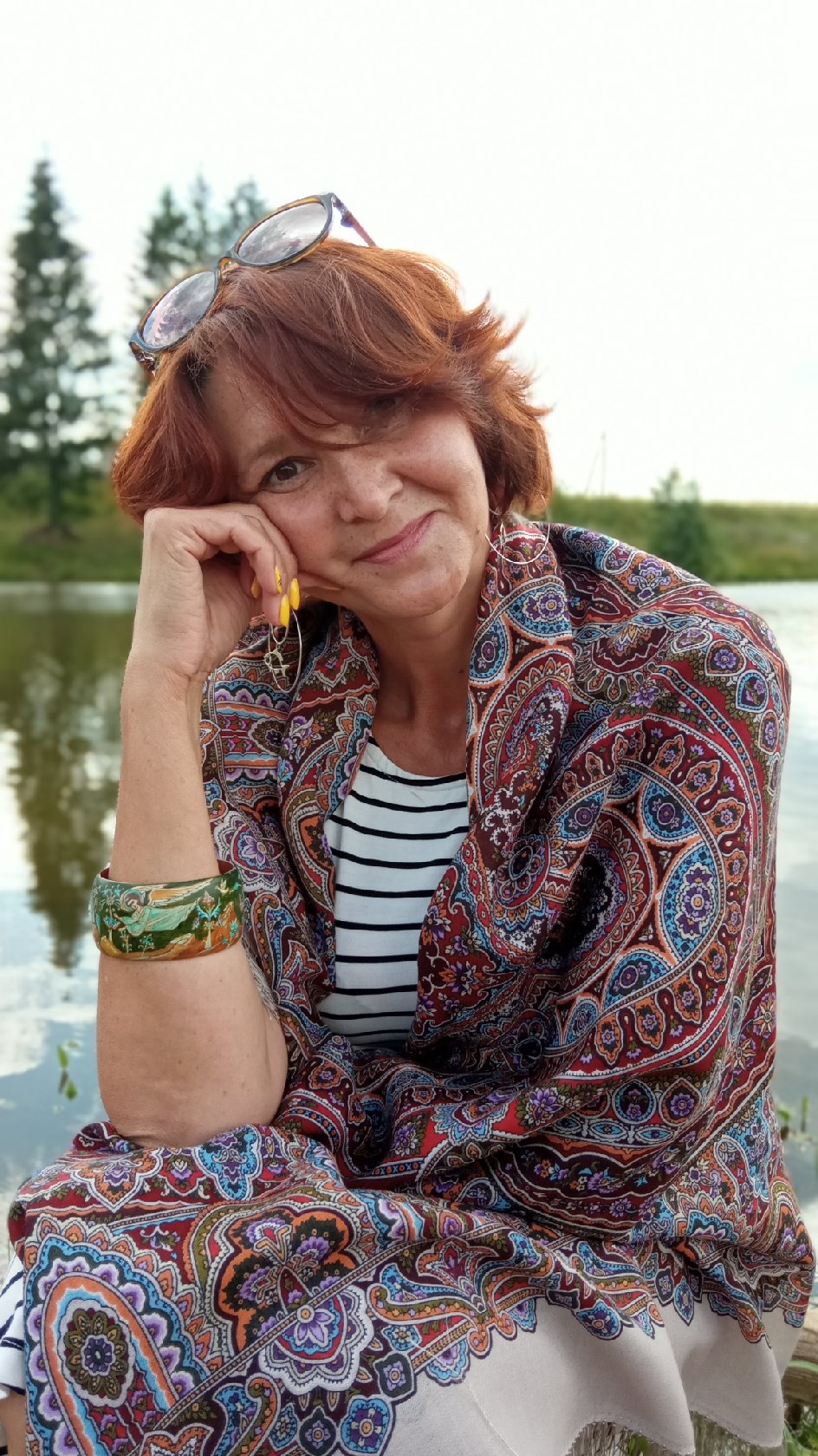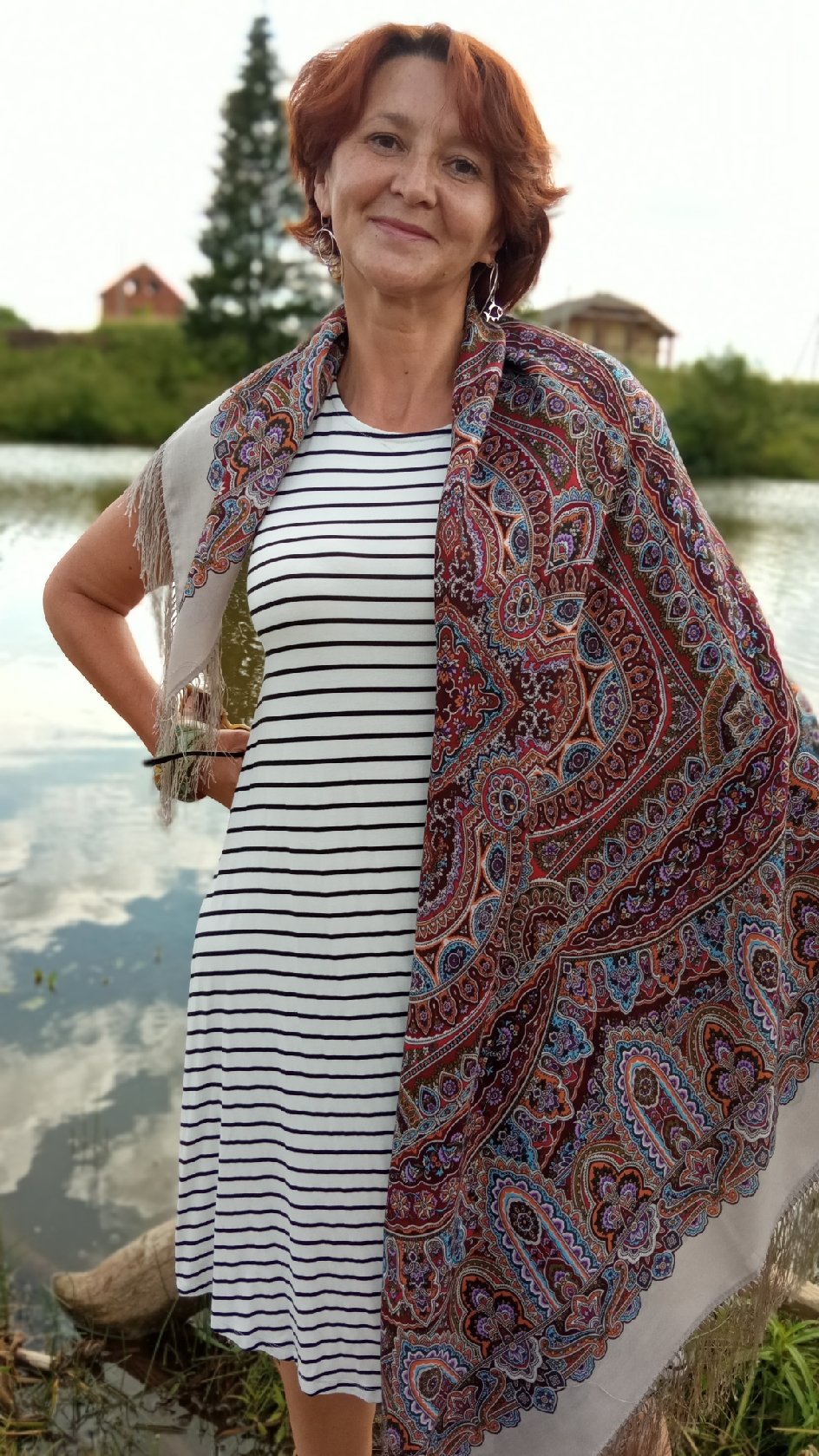 Таня Имбирь у воды и на каникулах прекрасна в любых платках. ^%