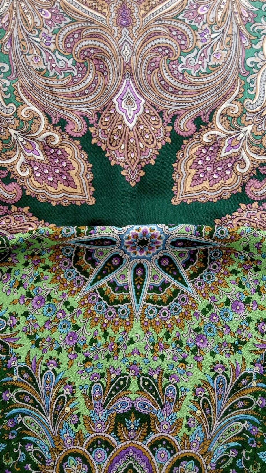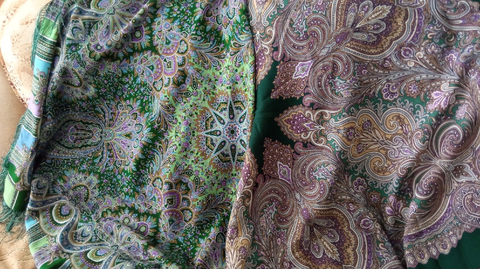 Елена Л! Очень привлекателен "В вихре танца" . Детально с "огурцами" --спасибо, я их обожаю! Не купила его в свое время--жалею. Уверена, Вам оба платка подходят. В мире любви менее контрастный, нежнее.