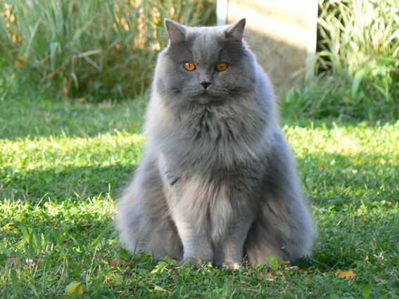 Но по происхождению это британская короткошёрстная, та, которая иногда бывает длинношёрстной (т.е. хайлендер, именно так называют неожиданно "прорвавшихся" длинношёрстных котят у британцев. Для таких кошек устраивают "свои" конкурсы, по наследству длинная шерсть не передаётся).