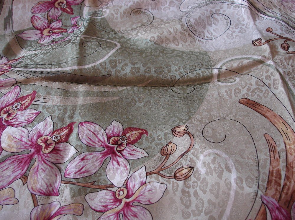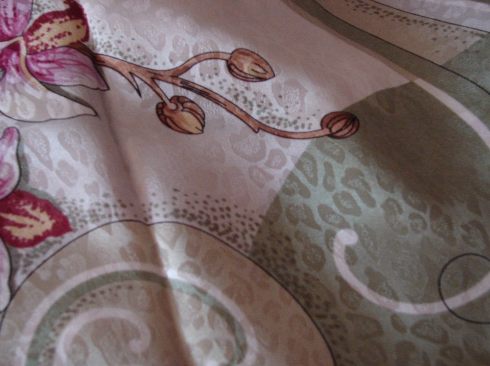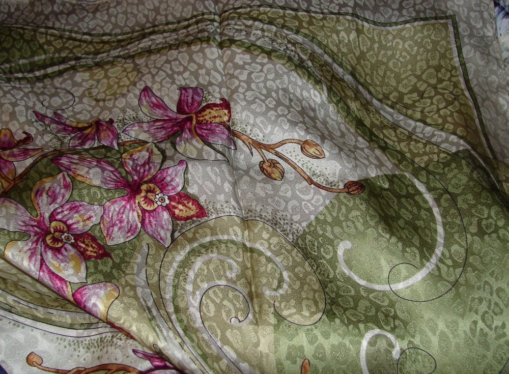 Ох, да я их несколько раз покупала в разных колоритах, но никогда не видела вот такого варианта: Вспышка: До этого платка видела Орхидеи с узкими полосочками, по типу мелкой зебры, и с разводами, а вот с "леопардовыми пятнышками", как на Белом танце-18 не видела.