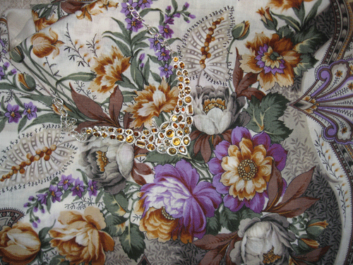 Так вот, Светлана на дня была у меня в гостях. Перебирая мои платочки, она надолго задержалась на всё той же "Отраде" (которую поминаем мы чуть ли не в каждой теме форума): "До чего же удивительный плат. Гармоничен с любыми камнями и украшениями. Подари! Или дай на время фотосъемку провести..."