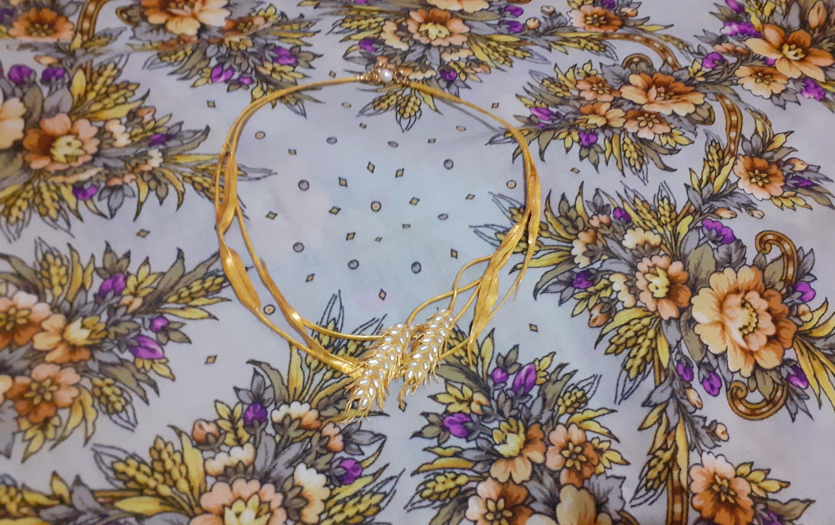 Дорогие дамы, внезапно накрыло желанием заиметь украшение в виде колосков. Ищу колье на шею, но и от серег не отказалась бы. Пока нашла подобное украшение на ЯМ. Но там кожа, а я хочу из металла. Если кто - то видел подобное и может дать ссылку, прошу в ЛС.