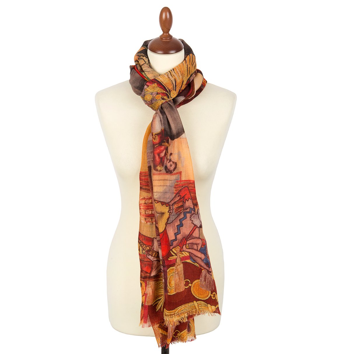 Палантин шерстяной набивной, разреженный, 80х230 см