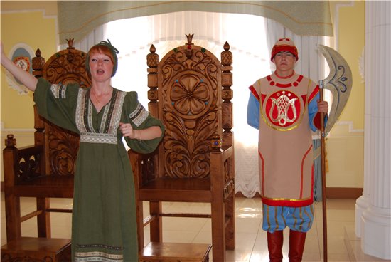 Мы вошли во дворец и нас встретил мышиный рыцарь, а симпатичные девушки пригласили осмотреть царские палаты