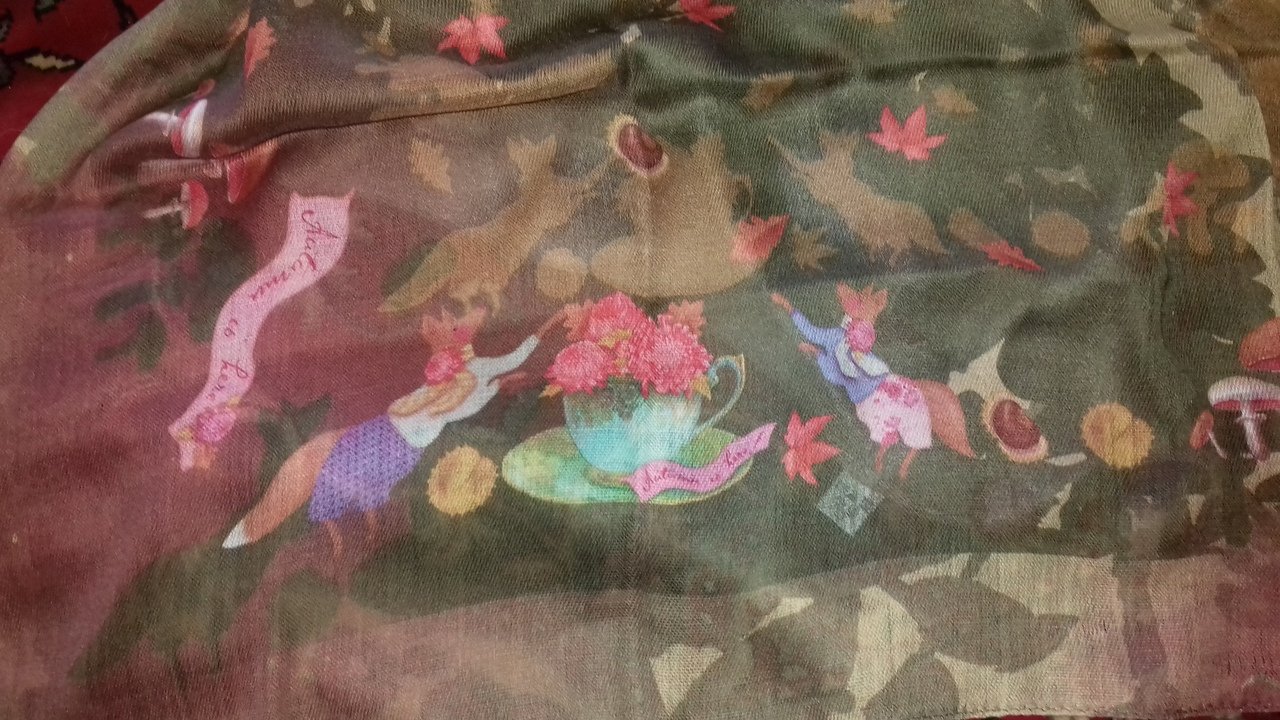 115х115, 10251-10. Разреженка Инны Макаганчук. Фотография на сайте - бледное подобие платка. В реальности краски насыщеннее. Мне магазин прислал печать от 03.12.19, ткань мяконькая, сам платок удивительно осенне-уютный и сказочно-кэрролловский. Но фотографироваться не любит. Так что и у меня цветопередача "прихрамывает".
