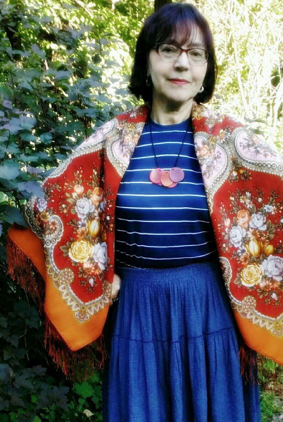 А платочек этот рыженький я подарила год назад красивой молодой женщине с темно-рыжими волосами, ох, как он ей идёт!