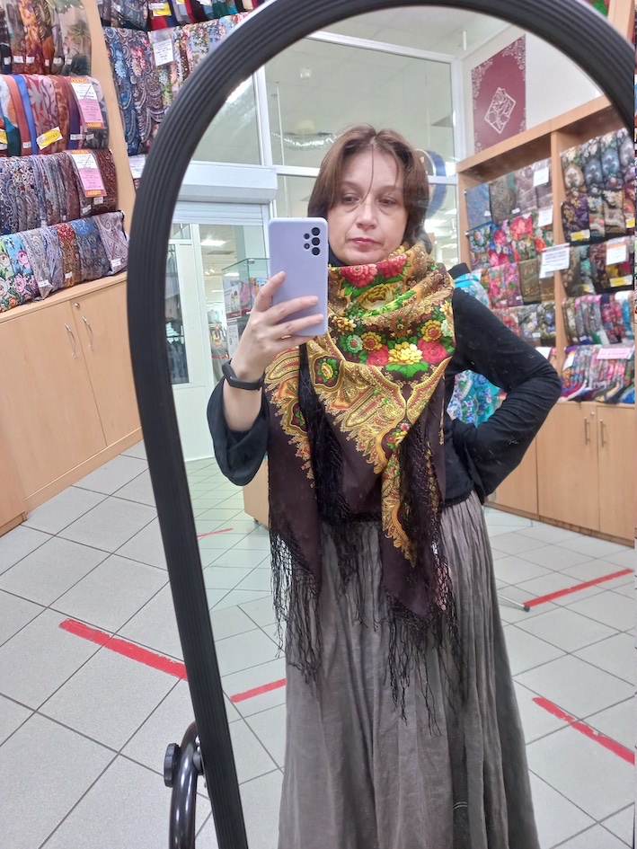 А на следующий раз я взяла самый свой золотой платок из шкафа и поехала их на себе видеть-сравнивать. ...