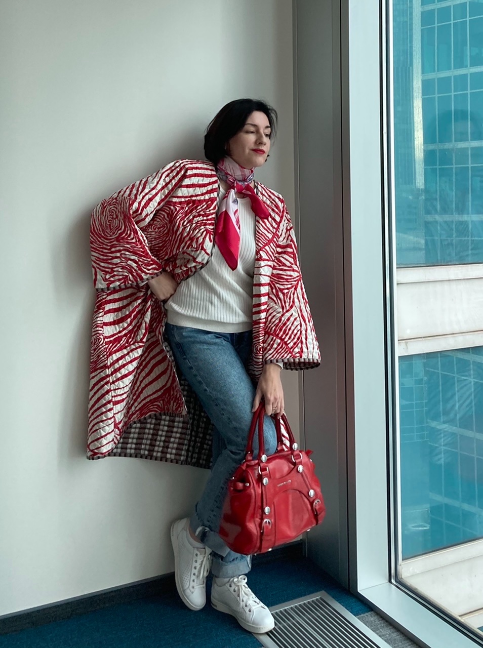 По форуму я уже побегала, нашла все фотки с этим платком, но может у кого свеженькие есть?! Не могу определить - цвет ягодный или просто красный?