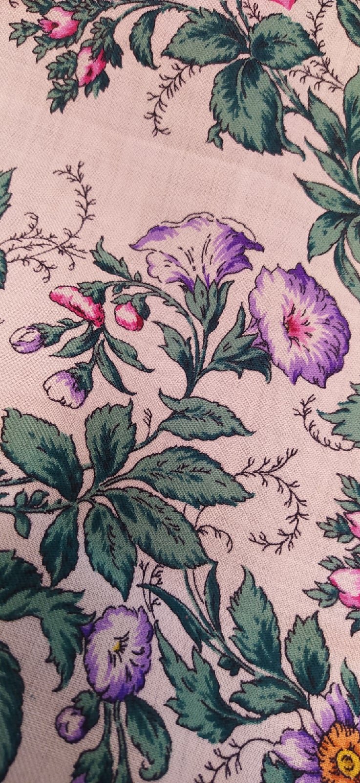 Оставлю в теме еще вот такую ошибку мануфактуры - недокрас Русской красавицы 18. Куплена лоскутом, цвет поля льняной. Чернопольная давно висела в списке, тянула с покупкой из-за ее фольклорности. Терпение вознаградилось.