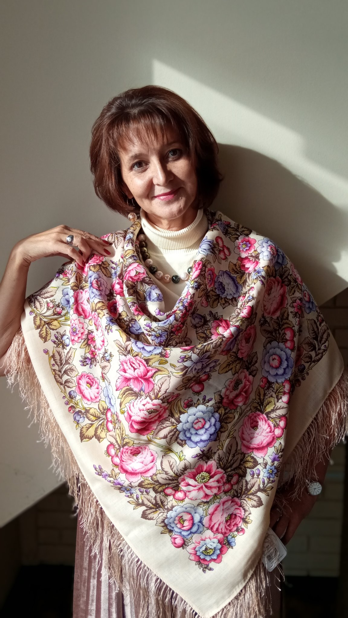 Натушка, какая прелесть, как идут эти платки вам. На голове очень красиво. Оба два хороши. С вас картины можно писать.правильная покупка. Поздравляю с обновочками. Пусть украшают вас и греют.