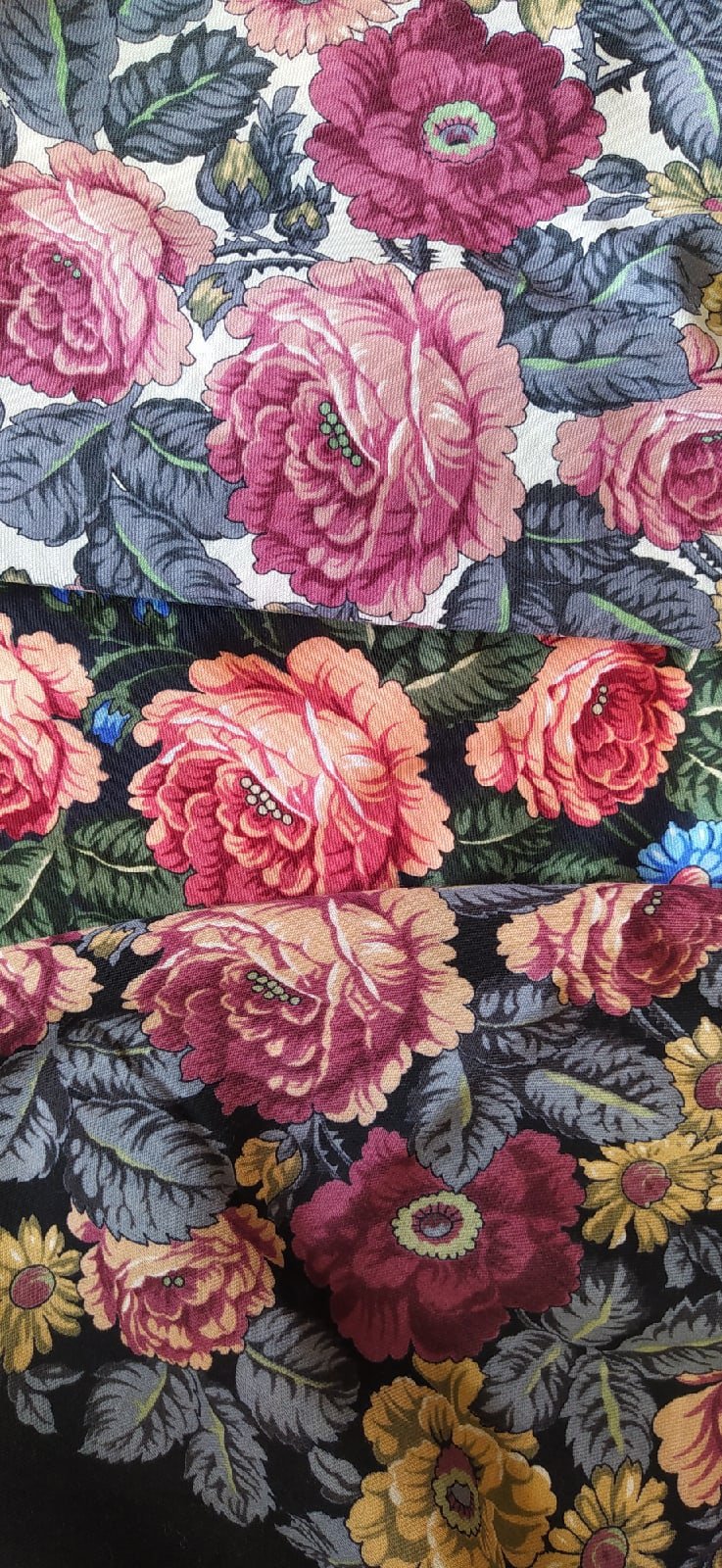 Заодно и Молодильные яблоки с Любимой увидела. Обычно рисунок на шалях исполнен тщательнее и детальнее, чем на платках. А тут он у 125-ки даже несколько тоньше. Хотя действительно очень схожи.