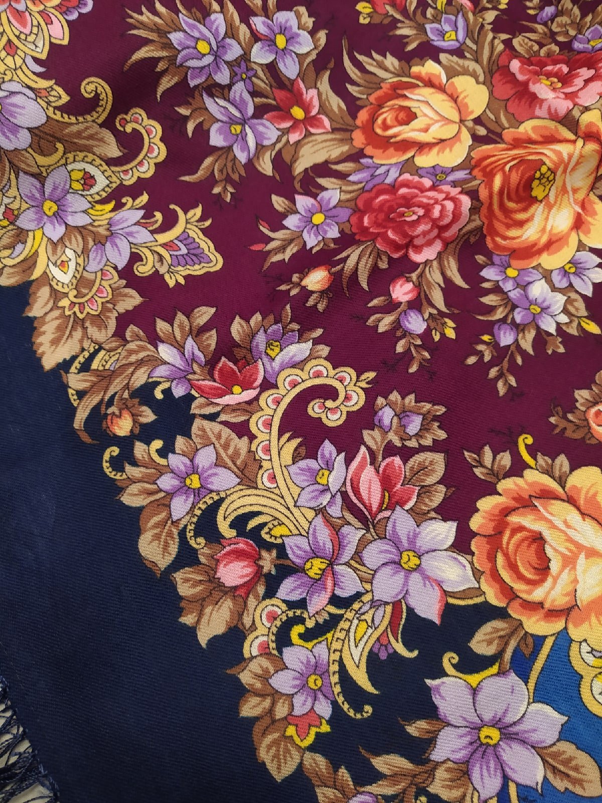 Второй трофей - малыш Екатерины Регуновой с полем цвета чудесной спелой вишни и пышными букетами. Любимые ирисы :: В архиве номера у этого платочка нет, ппф 72*72