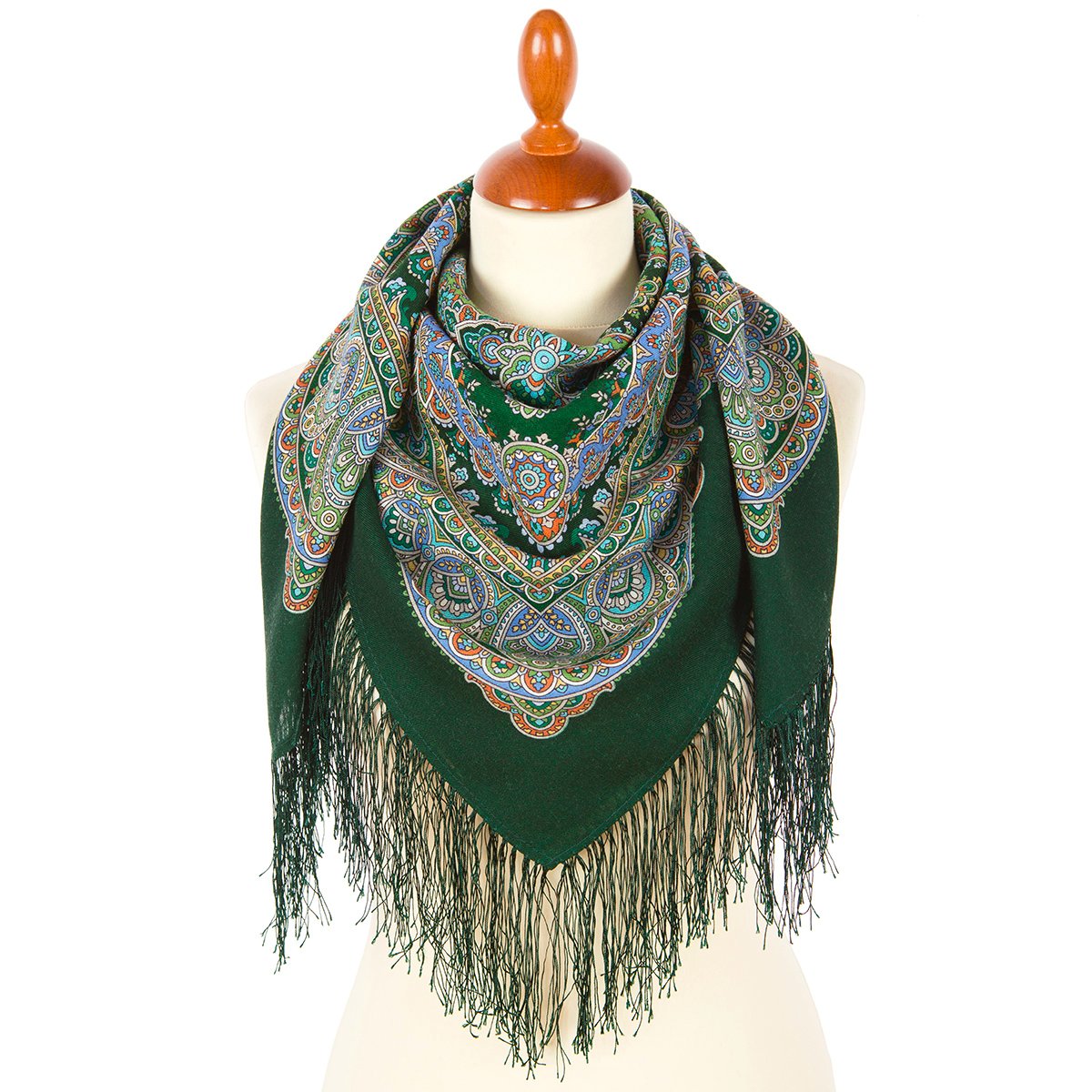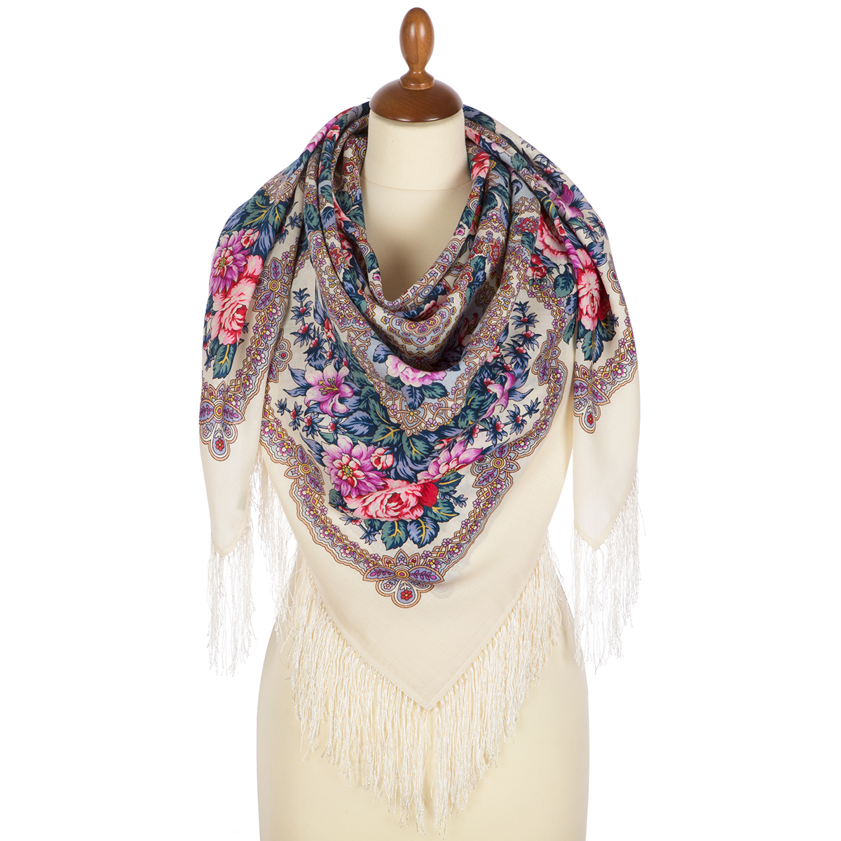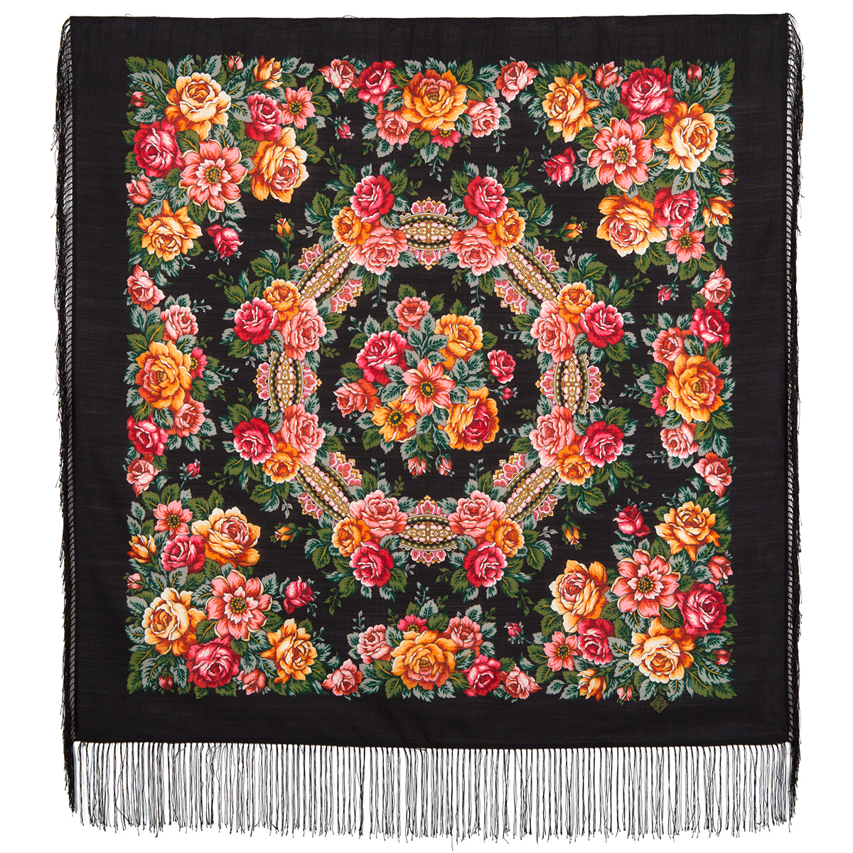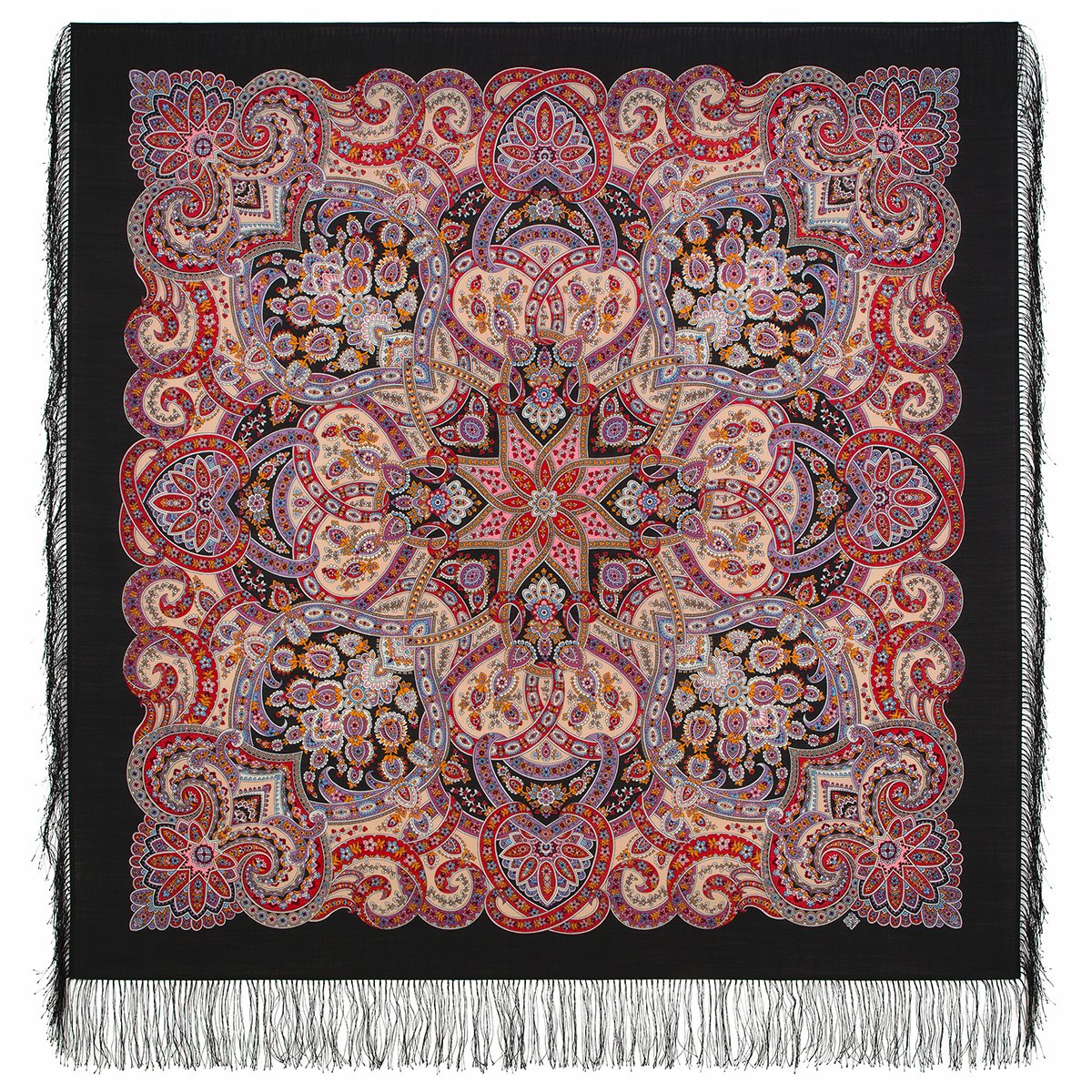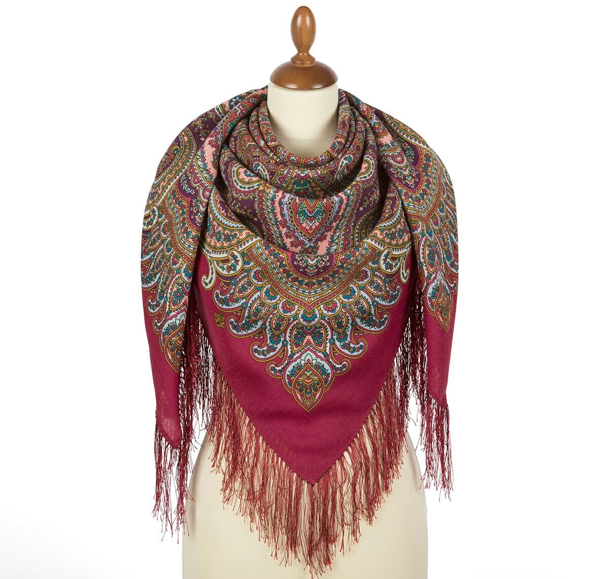 Платок шерстяной с шелковой бахромой, 125х125 см.