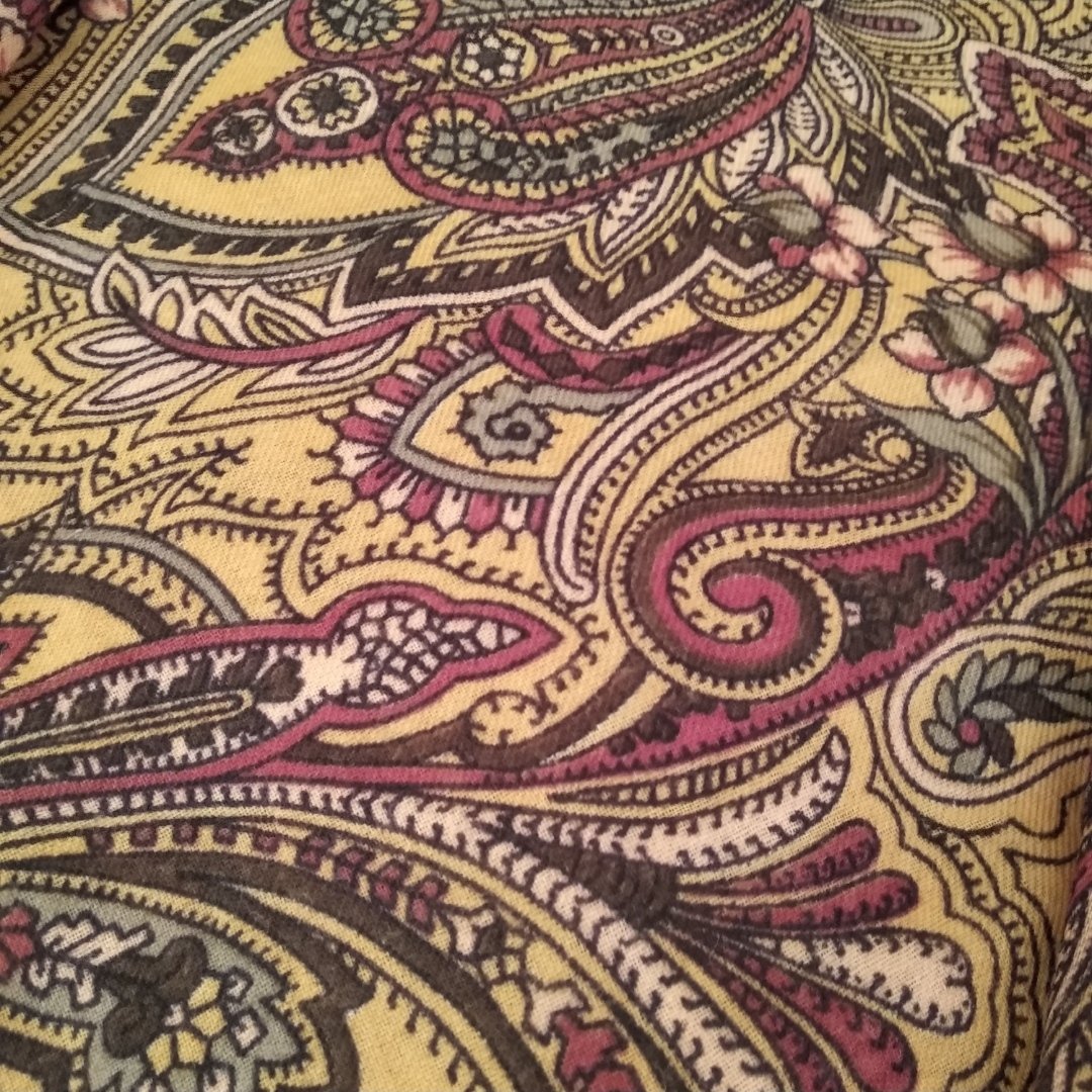 спасибо! Да, платочек очень хорош! Чудесный орнамент, красивые цвета, все самые любимые! Такой рисунок можно было бы и побольше размером сделать. Акция сподвигла на покупку. По колориту созвучен Троицыному утру-11, возможно, попробую их компоновать, когда наступят холода.
